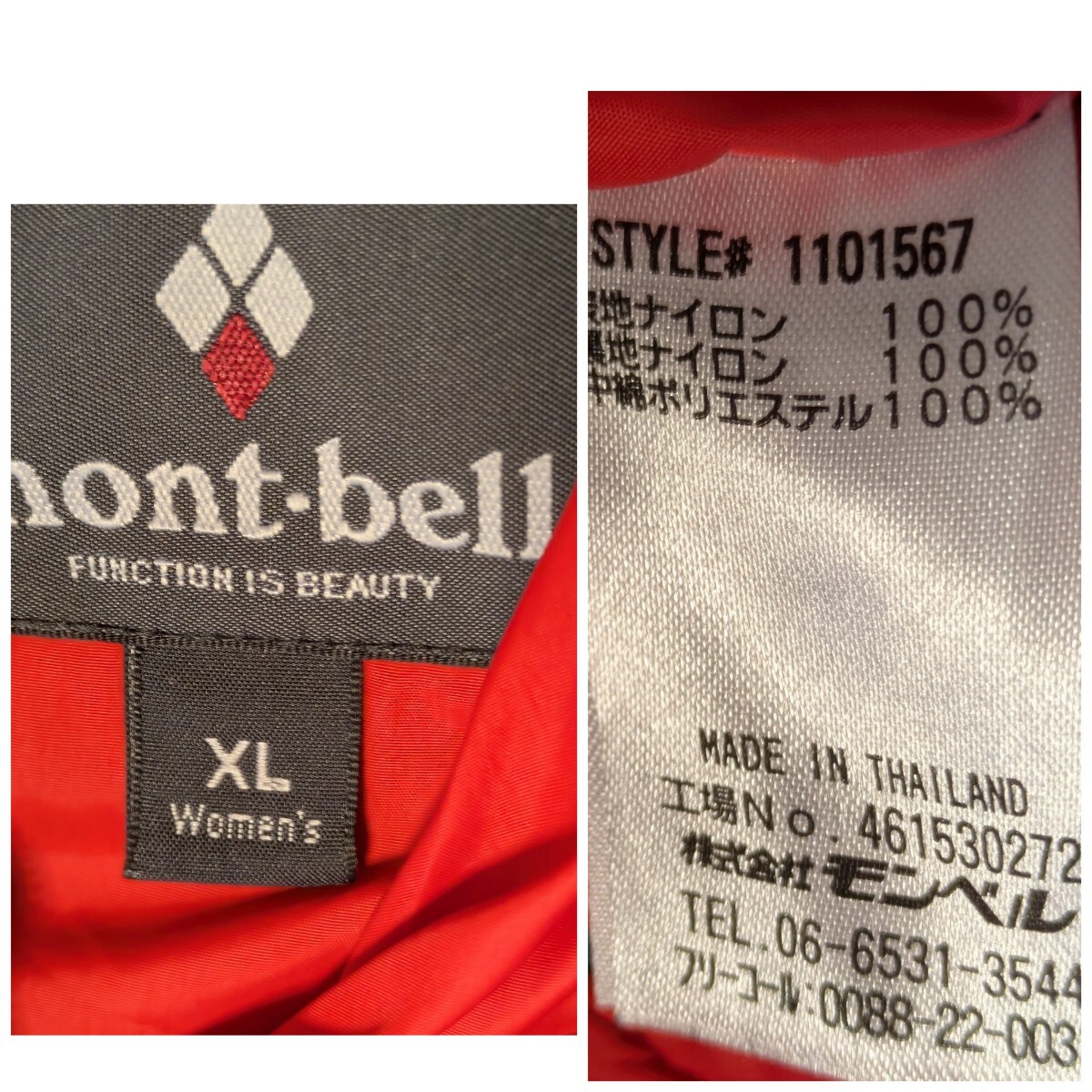 モンベル mont-bellサーマランドパーカリバーシブルレディースXL1101567レッドスレートブルー赤青