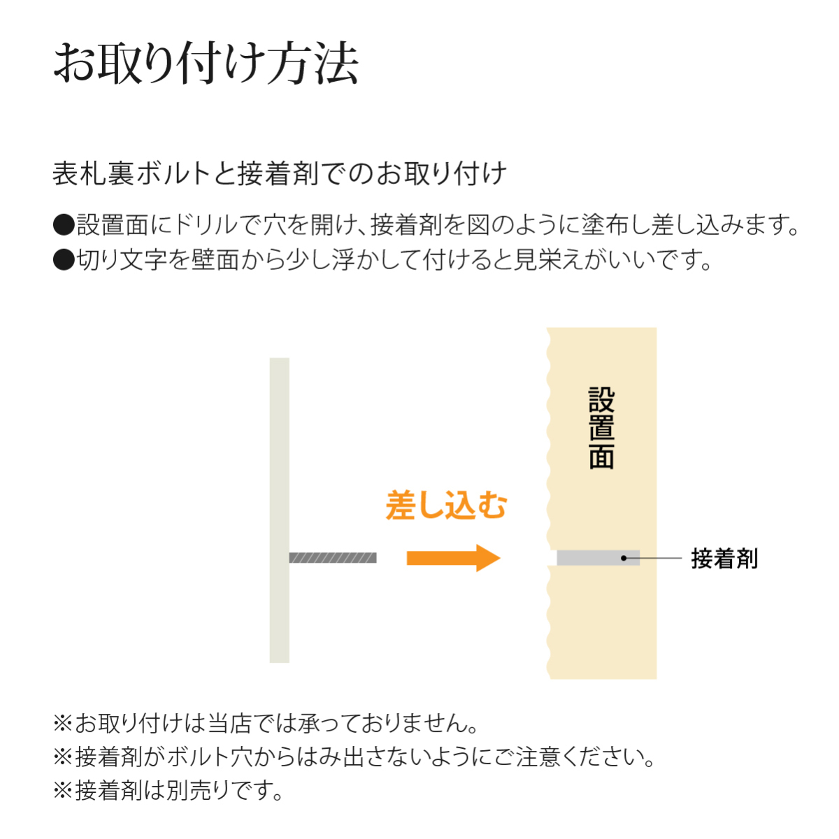 | 取付方法 | ボルトと接着剤でのお取り付け。 |