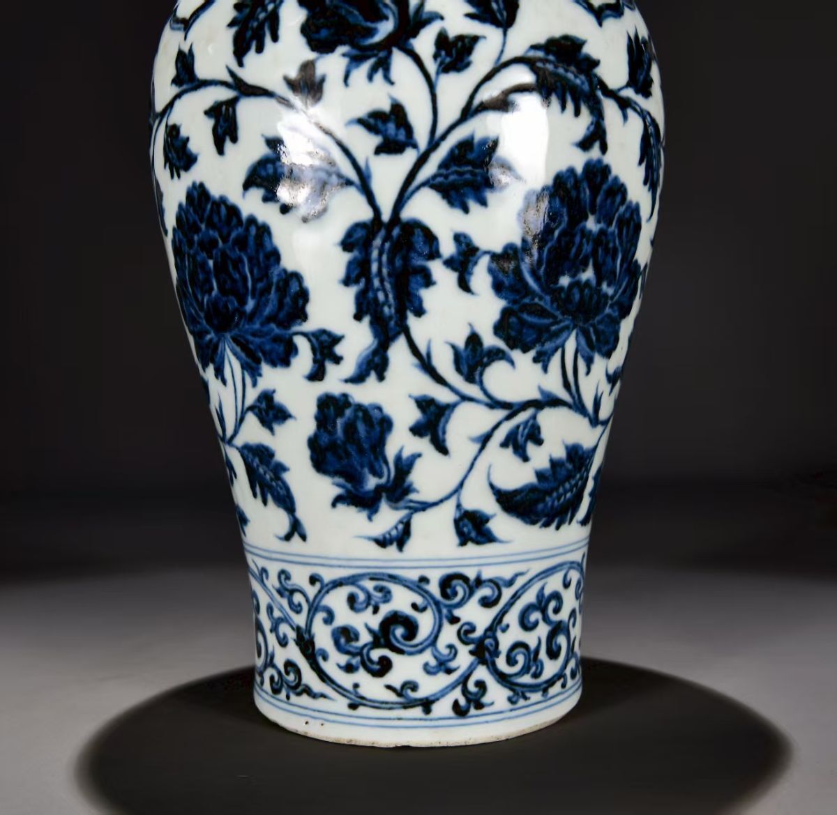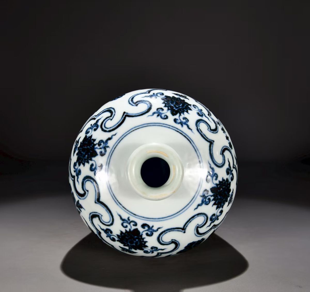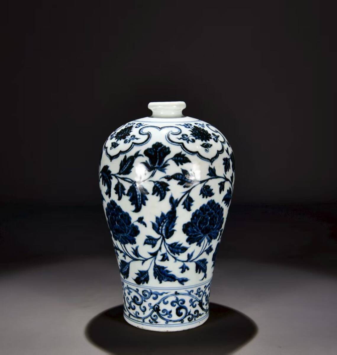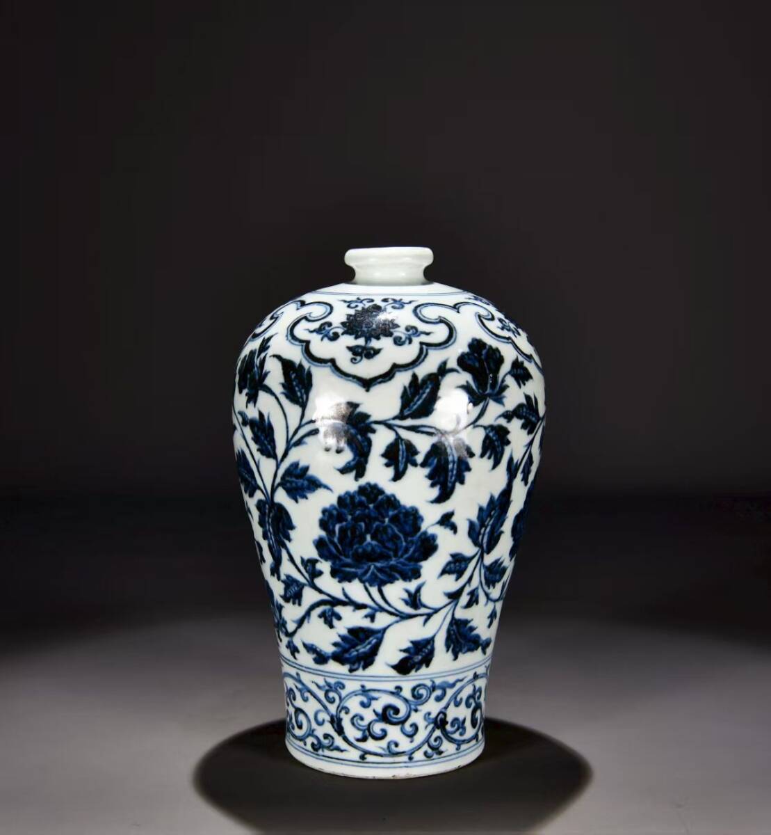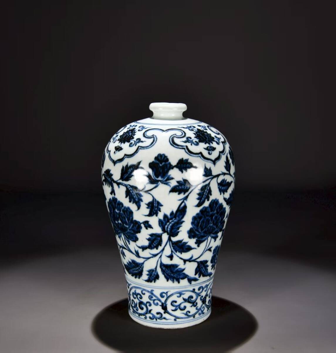 【美の継承】中国古美術 旧蔵 明宣徳 青花 牡丹紋 梅瓶 古陶磁器 花瓶 瓷器工芸 骨董品 置物 唐物 早期收集 古玩 R07090113