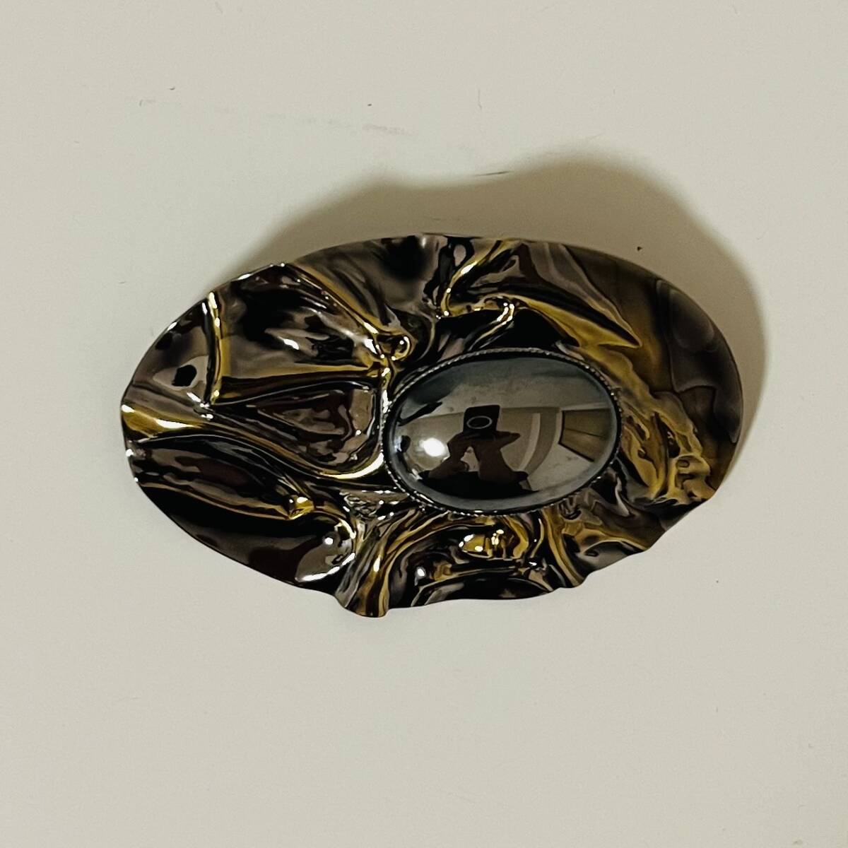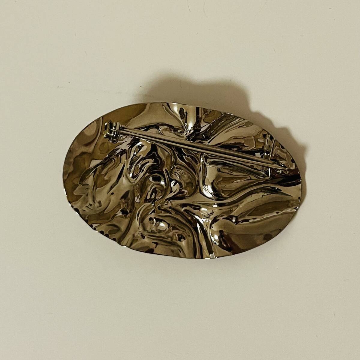285 アンティーク ビンテージ コスチュームアクセサリー ブローチ 未使用保管品!シルバーカラー 石 ストーン オーバル 海外製