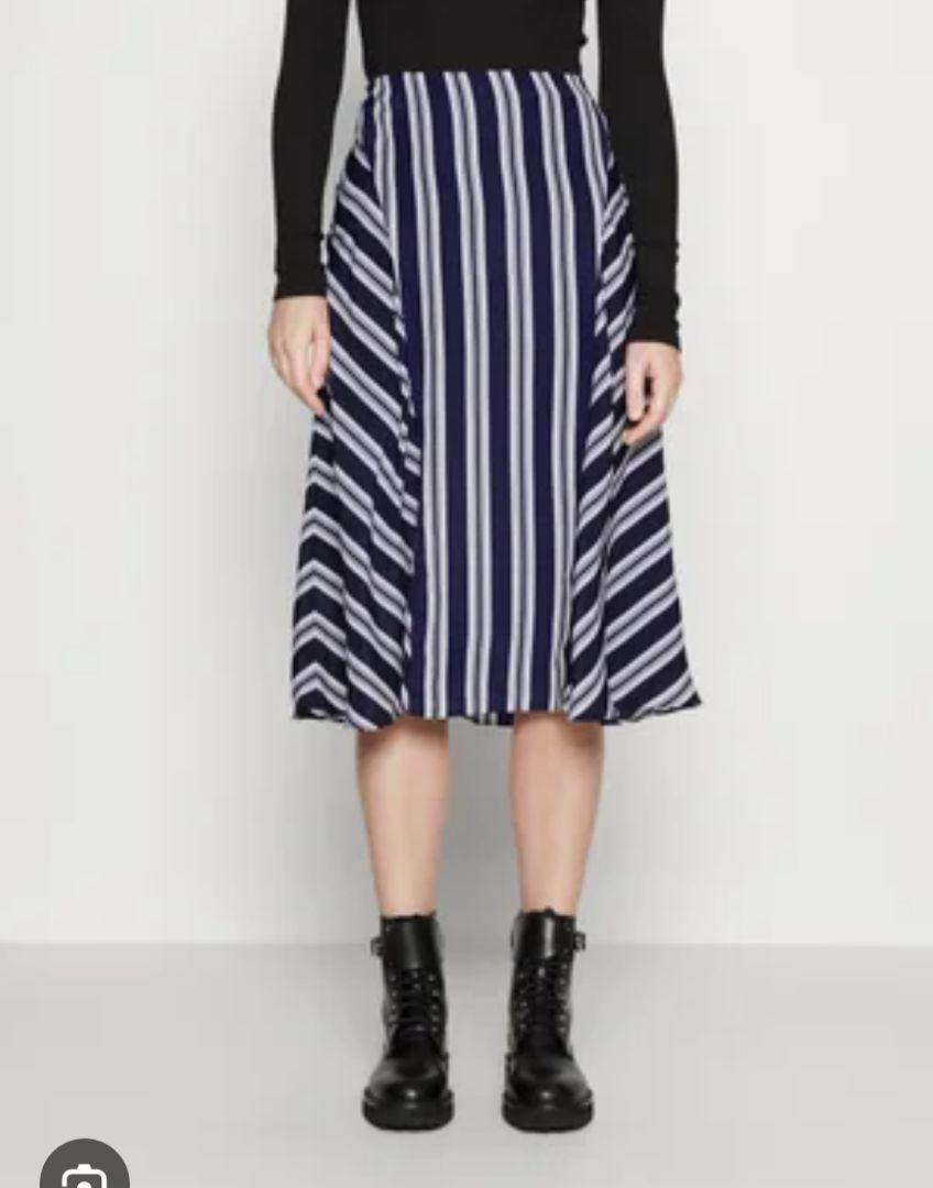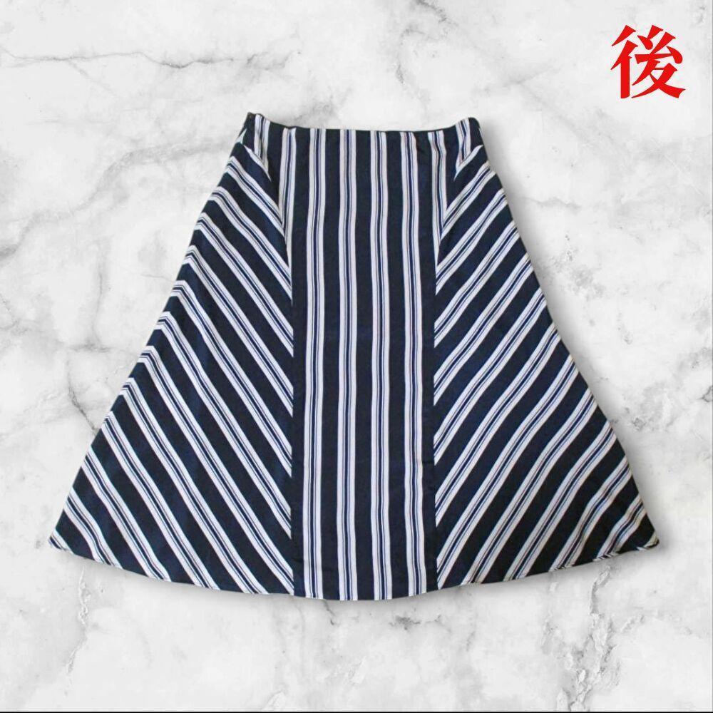 ローレンラルフローレン Lauren Ralph Laurenの 紺×白のストライプの使い方が絶妙なデザインのフレアスカート