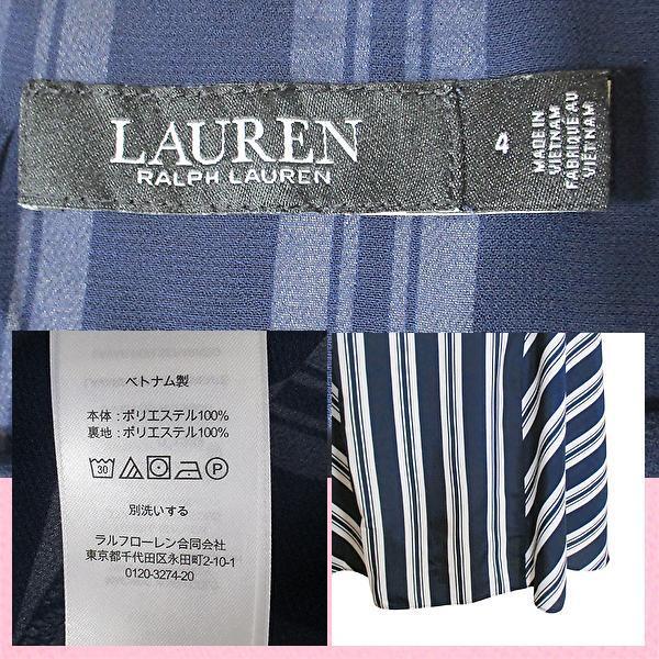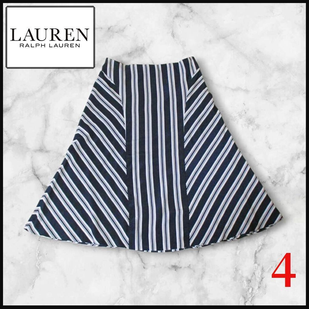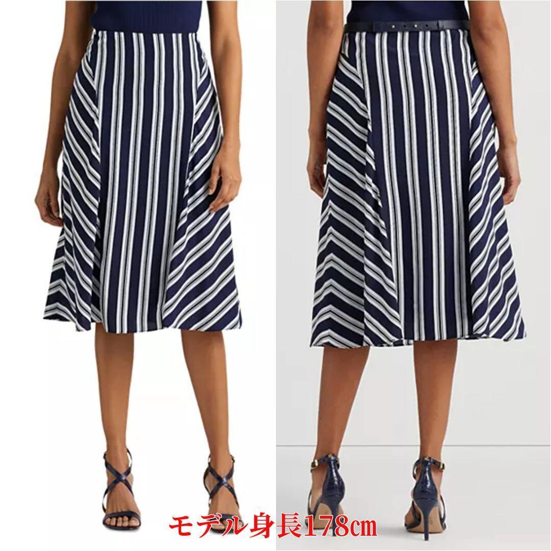 【ローレンラルフローレン】ストライプ フレアスカート紺白 手洗いウォッシャブルLauren Ralph Laurenゆったりサイズ 4サイズ 匿名発送
