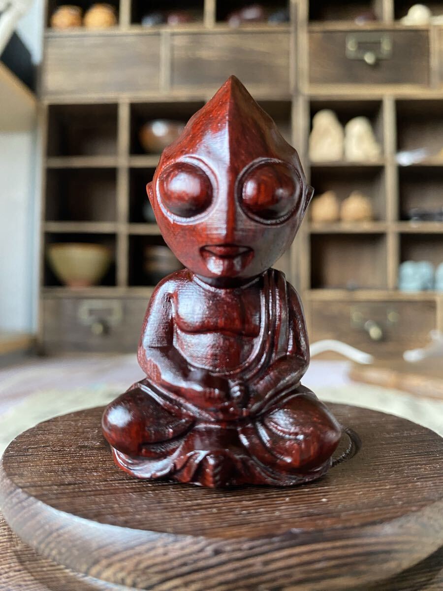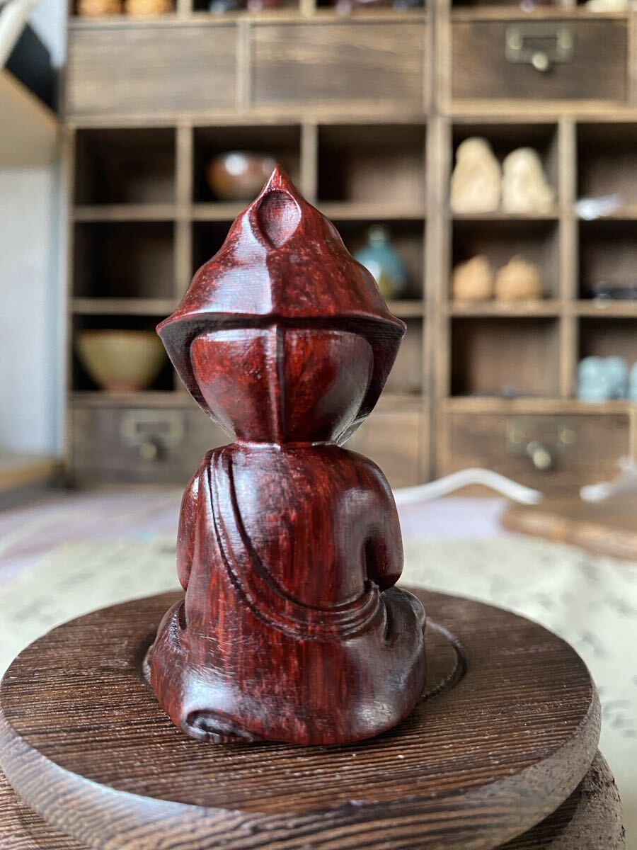 仏教美術 高級木材彫刻 天然木 静思 木彫り 可愛い坐像オブジェ 置物聖 實 工芸品 仏教工芸品