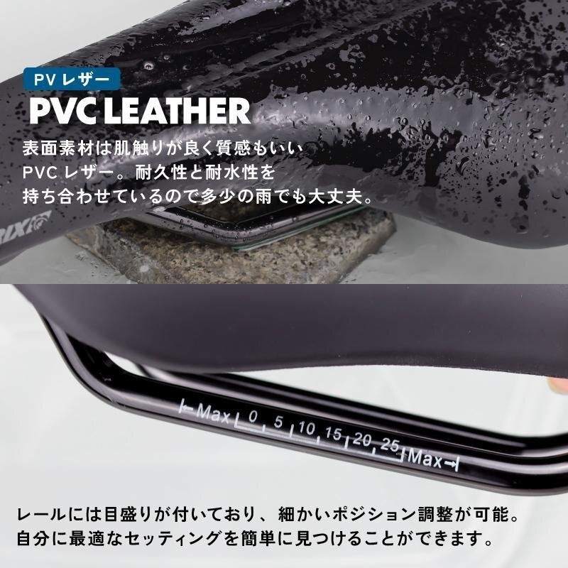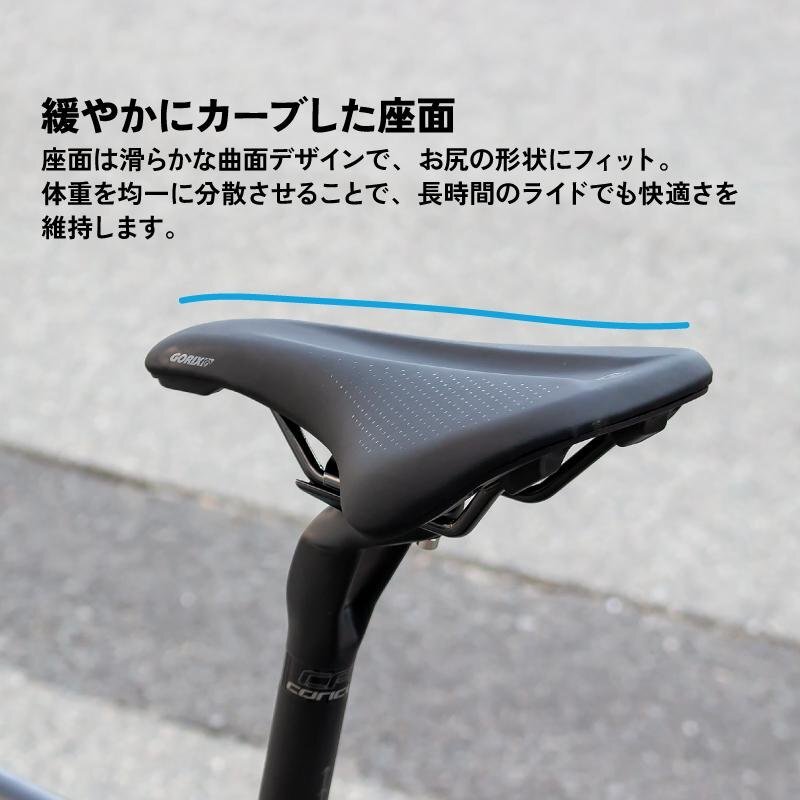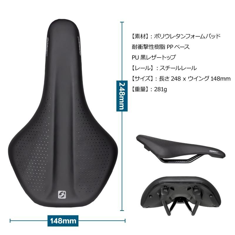 GORIX 自転車サドル GX-SN285 「長距離ライドを楽しむすべてのライダーへ!」 ショートサドルで、座面は緩やかにカーブした曲面を採用。 クッションにはPUポリウレタンフォームパッドを使用し、厚めの構造となっているため、お尻への負担を軽減し、痛みを感じにくい仕様です。 さらに、サドル中央には前立腺擦れを防止するための溝が施され、長時間のライドでも快適さを維持します。 トップ素材には耐久性と防水性に優れたPVC黒レザーを採用し、見た目もマットで落ちついた仕上がりです。 ロングライドに適したこのサドルは、ロードバイクやクロスバイク、MTBなどのスポーツ自転車やツーリングに最適なモデルとなっています。 またサドルの位置(ポジション)、高/低を調整してみるのもお尻の痛みを解決する方法です。 リーズナブルな価格となっているのでサドル交換をトライしてみたかった方にもおすすめです。 特徴 ●漕ぎやすさ重視のスポーツモデル ●厚めのクッションで優れた耐衝撃性と伸縮性があり ●緩やかにカーブした曲面な座面 ●耐久性、防水性に優れるPVC黒レザートップ ●クッション性に優れたPUポリウレタンフォームパッド ●軟部組織へのプレッシャーを軽減する目的の浅い溝 ●マウンテンバイク、ロードバイク 、クロスバイクなど様々な自転車に 【ショートサドル】 サドルの先端部分である「ノーズ」を短くすることで、前傾姿勢での快適性が劇的に向上します。 ショートノーズ設計は、骨盤の前側への圧力を軽減し、ペダリング時に太ももの動きを妨げません。 その結果、より自由でスムーズなペダリングが可能となり、特に高速走行時の安定感が増します。 【厚めのクッションモデル】 スポーツ用サドルとしては珍しく、厚めのクッションを採用。 これにより、スピードを重視しつつも、お尻にかかる圧力を軽減し、快適な座り心地を提供します。 【トップ素材にはPVC黒レザートップ】 表面素材には耐久性と防水性に優れたPVC製の黒レザーを採用。 汚れや摩耗に強く、見た目にも高級感があるため、長期間美しい状態を保つことができます。 【中央に溝】 中央に浅い溝を配置することで、前立腺への圧力を軽減。 敏感な部位への負担を減らし、特に長時間のサイクリングにおいて快適性を向上させています。 【ロングライドモデル】 長時間のライドに特化した設計で、クッション性と圧力分散性能が強化されています。 ツーリングや長距離サイクリングを楽しむライダーに最適なモデルです。 【商品内容】:サドル 【レール】:スチールレール 【サイズ】:長さ248 x ウイング148mm 【重量】:281g 【仕様】:ポリウレタンフォームパッド、耐衝撃性樹脂PPベース、PU黒レザートップ 商品は入荷によりキズがある場合があります。 傷や細かい汚れが気になる方や神経質な方は入札をお控え下さい。 入荷時期により予告無く一部仕様変更する場合が有ります。 カラーはディスプレイ種類環境等により実物と異なって見える場合がございます。 |