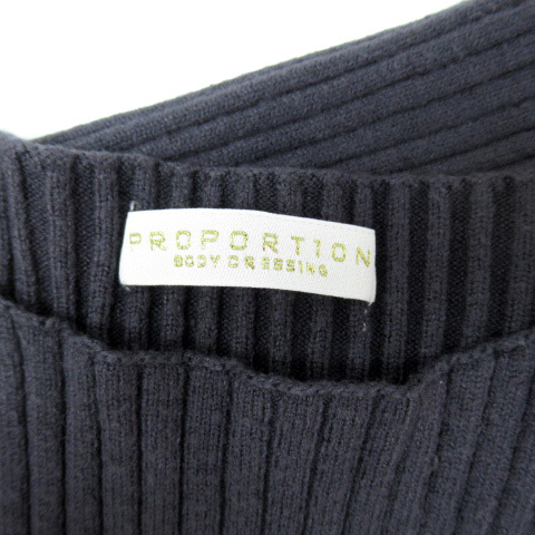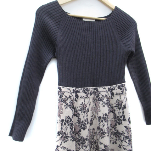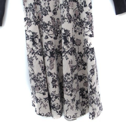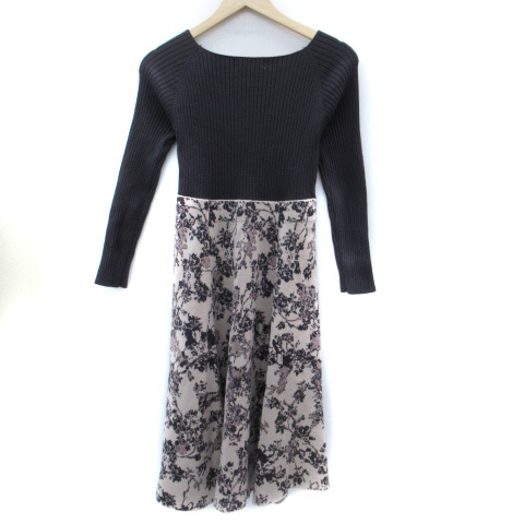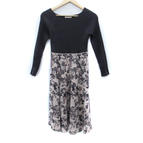 プロポーション ボディドレッシング ニットワンピース ロング丈 長袖 リブ 総柄 切替 S ブルーグレー ピンクベージュ