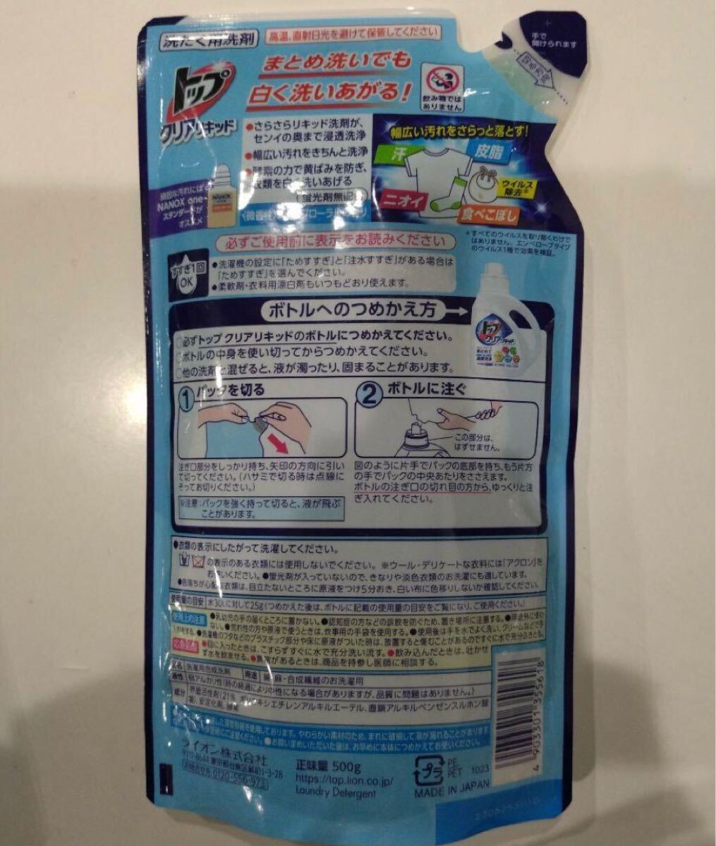 新品 匿名発送 送料無料 LION ライオン 洗濯洗剤 トップ クリアリキッド 詰替用 超特大 500g 3 袋