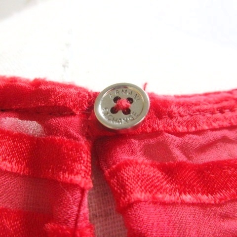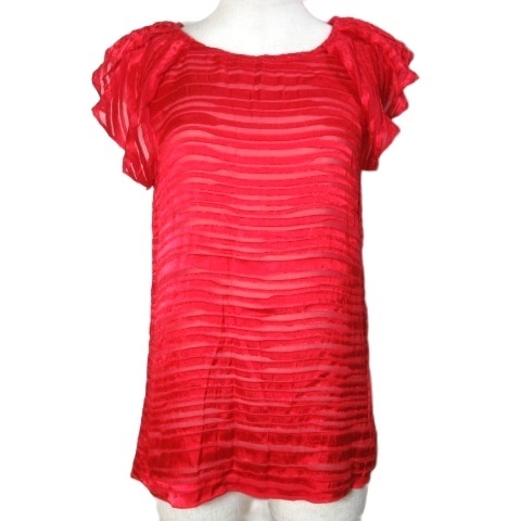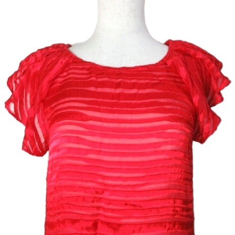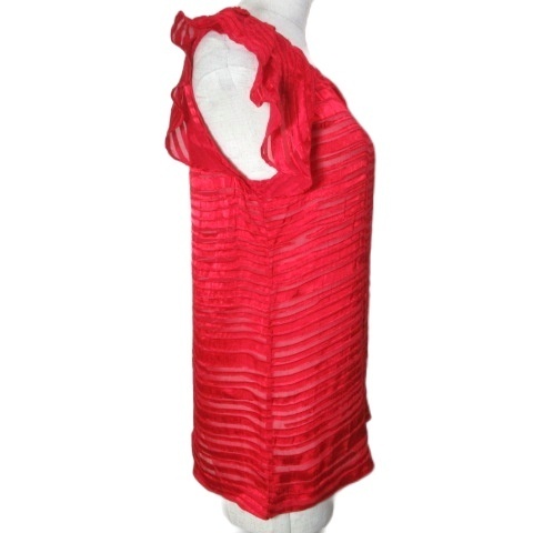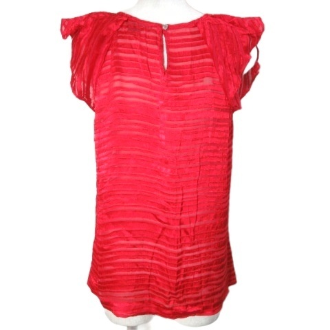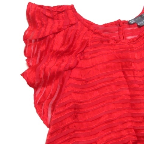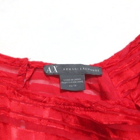 アルマーニエクスチェンジ 美品 シースルー ブラウス プルオーバー バタフライスリーブ ノースリーブ シルク混 ボーダー XS 赤 レッド X