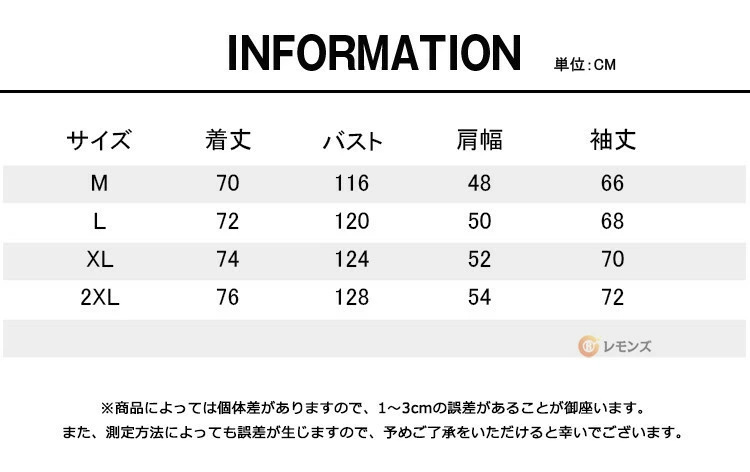 『一目惚れして購入♪価格が安い上に生地が本当にしっかりしてます。』など好評のお声を頂いています! 【 状 態 】新品未使用 【 カラー 】(画像1をご参考ください) 【 素 材 】ポリエステル100% 【サイズ】 黒2XL 実寸は素人採寸で多少の誤差はご了承ください ご落札前にぜひともサイズ表をご確認ください。 |