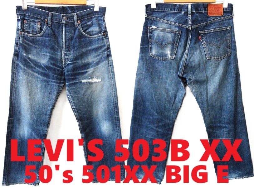 50's ヴィンテージ 復刻/LEVI'S:リーバイス/日本製/503B XX(501XX)/BIG E セルビッチ デニム/実寸 W34/ヒゲ/ハチノス/LVC 54501 赤耳