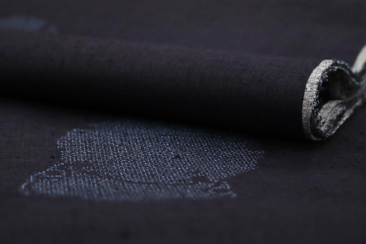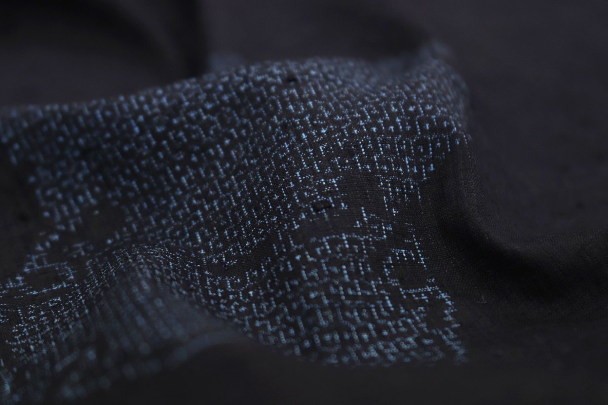 風合い豊かな紬地は、黒紺色のお色目でございます。