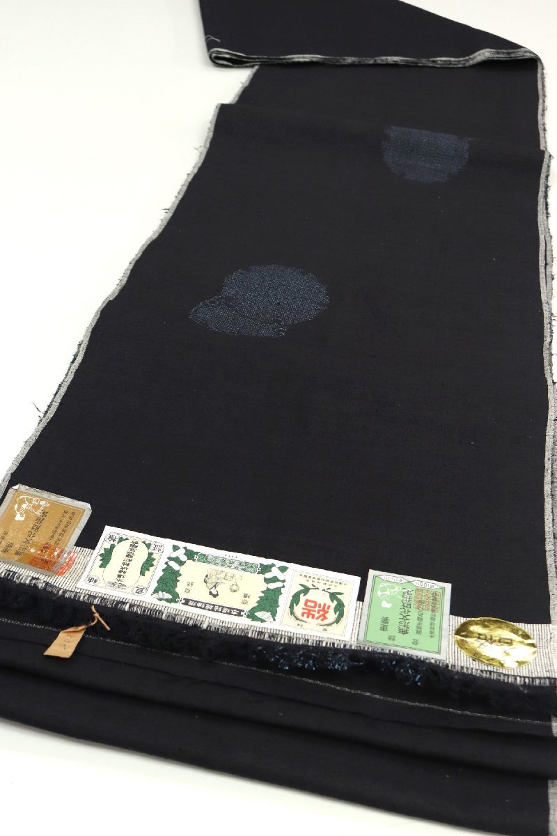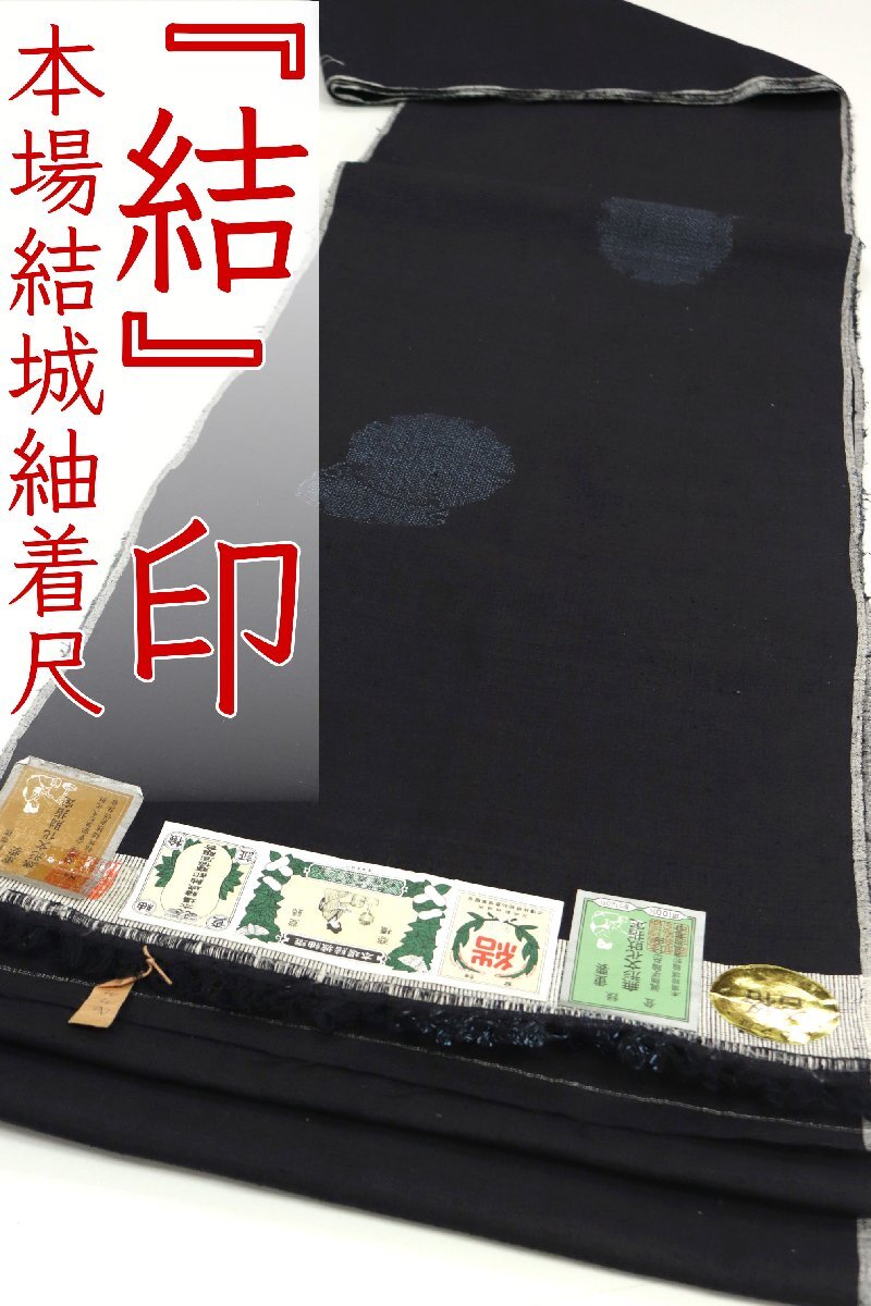 ◆証紙:本場結城紬卸商協同組合検査之証、重要無形文化財指定真綿手紬糸100%、茨城県結城市物産織物之証