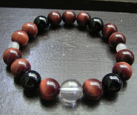 ☆恋愛運☆レッドタイガーアイxローズクォーツxオニキスブレスレット 天然石 パワーストーン