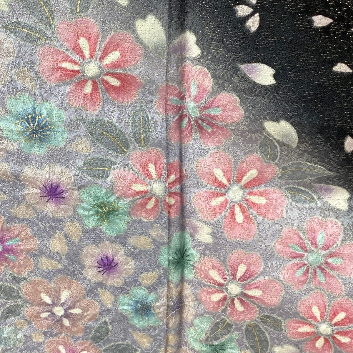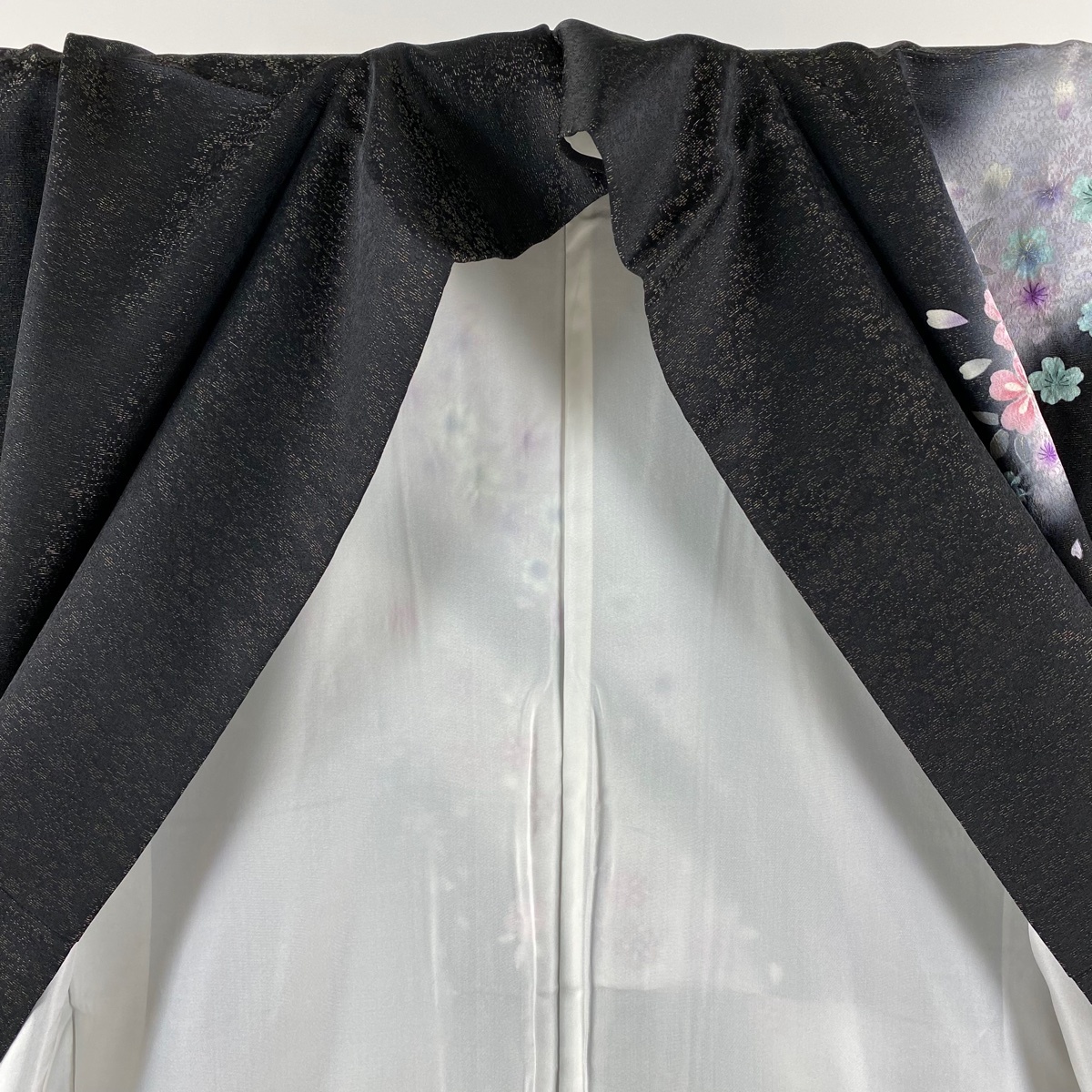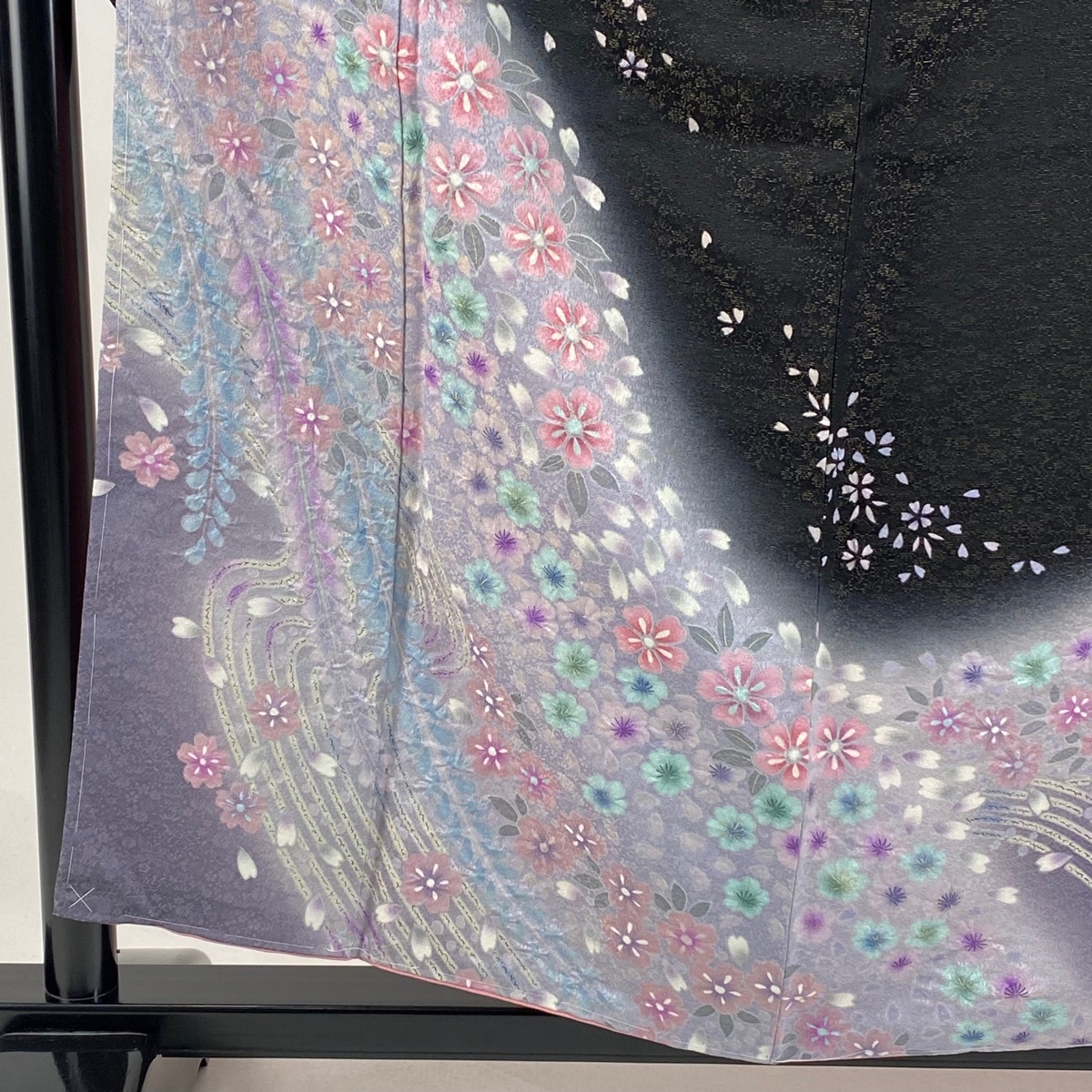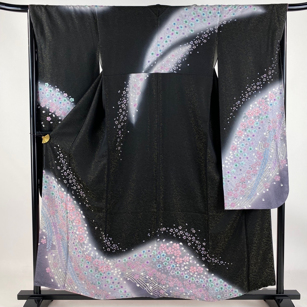 振袖 美品 逸品 桜 流水 金通し 絞り 黒 袷 身丈157.5 裄丈66 M 正絹 【中古】 |