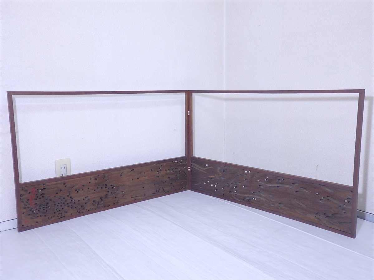 ★千利休ゆかりの寺 大阪 堺 南宗寺【古材 風炉先屏風 紙箱入り】虫喰い風 幅94cmが二面 高さ60.3cm 茶道具 家具 茶器