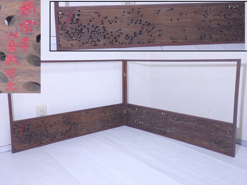 ★千利休ゆかりの寺 大阪 堺 南宗寺【古材 風炉先屏風 紙箱入り】虫喰い風 幅94cmが二面 高さ60.3cm 茶道具 家具 茶器