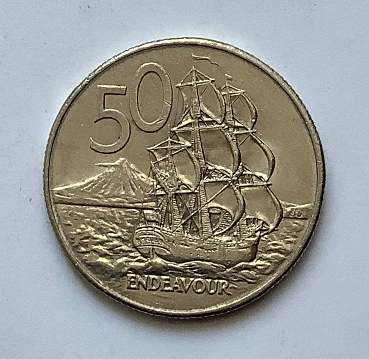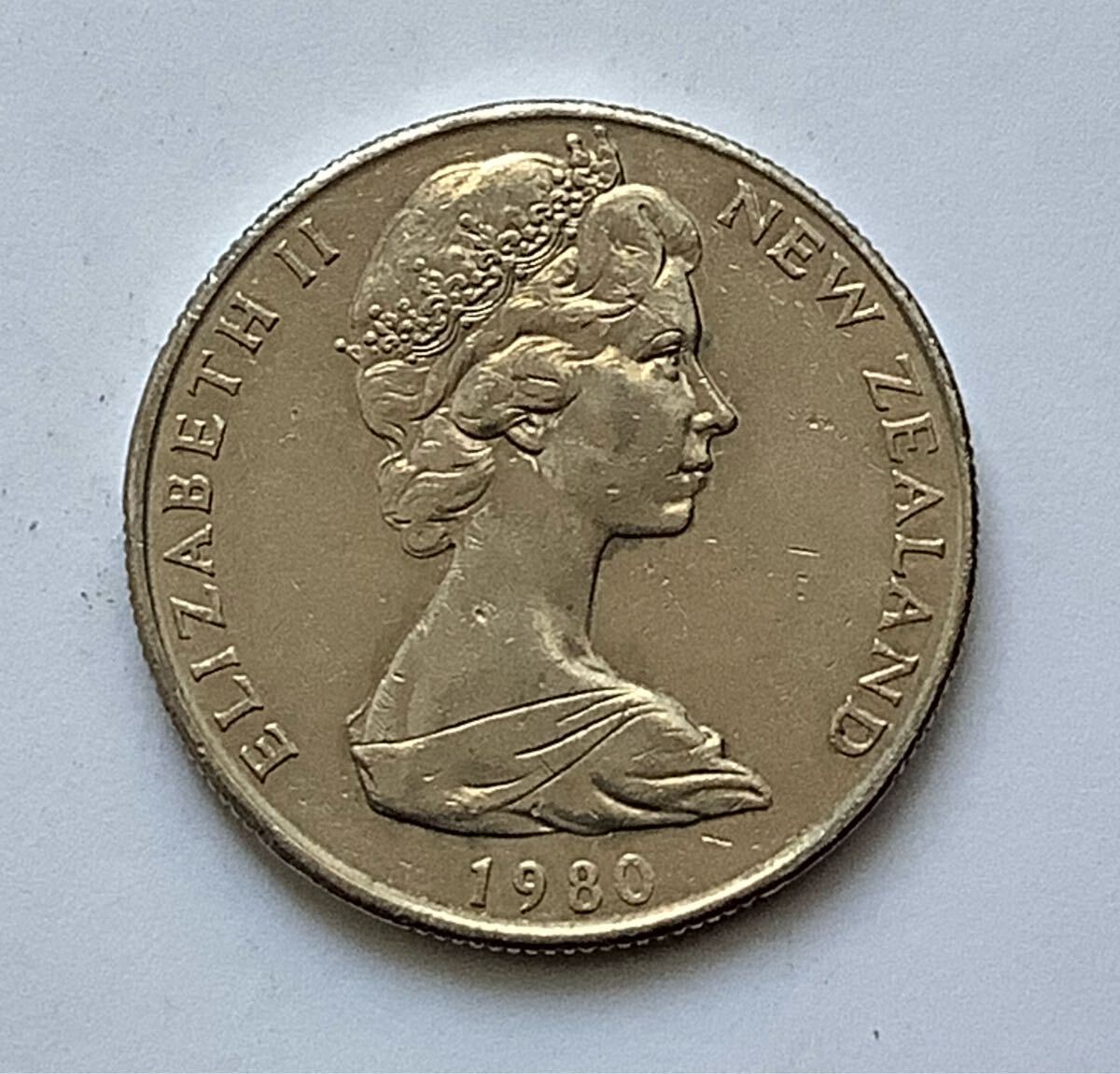 【商品詳細】ニュージーランド エリザベス女王肖像デザイン 大型50セント硬貨 1980年 1枚