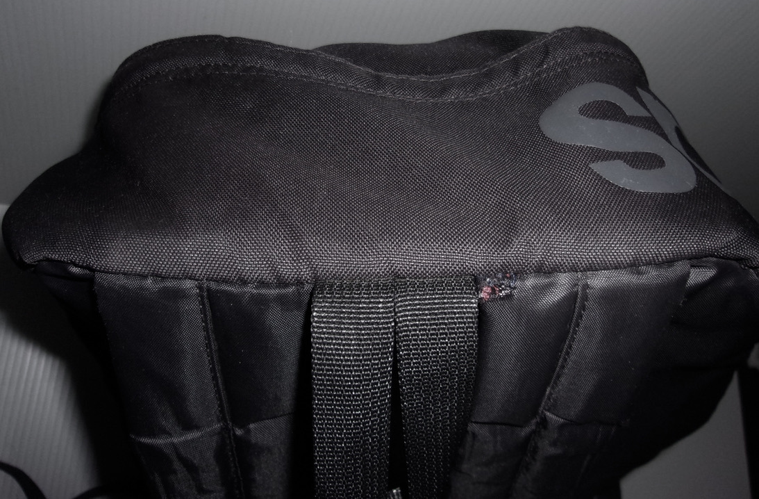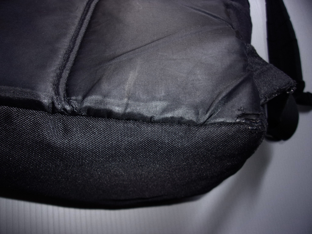 裏面(背中に触れる面)の生地がかなり薄く柔らかく、下部分に1cmx2箇所、5mmx1箇所、線状の破れがあります。手縫いすれば広がりは防げると思われます。背面の生地が薄いため、同じバッグはいずれも同様の状態になるのではと思われます。