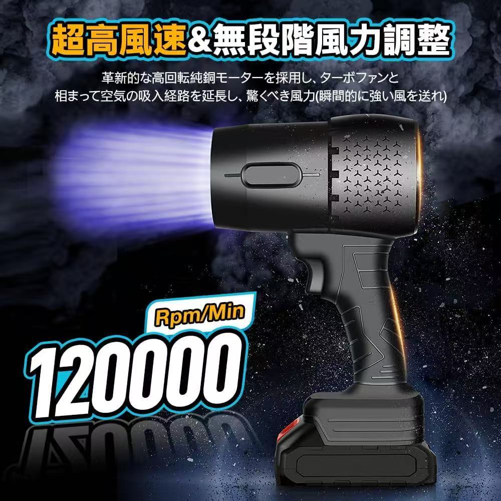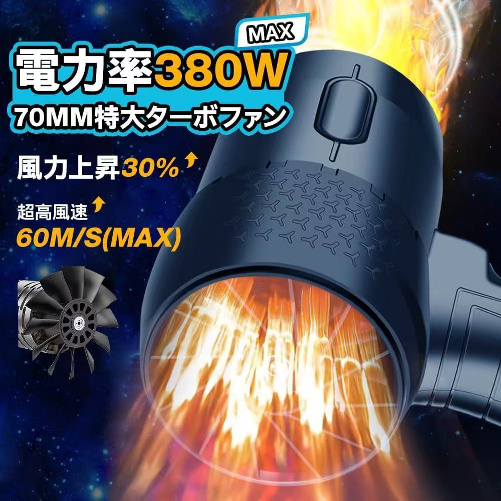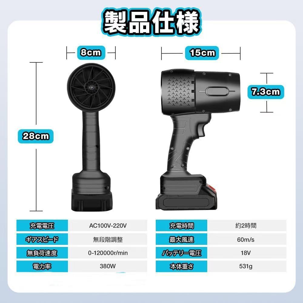 ブロワー 洗車 超強力 エアダスター 電動 2個バッテリー付き 380W 高効率 120000RPM マキタ18V互換バッテリー対応 電動エアダスター