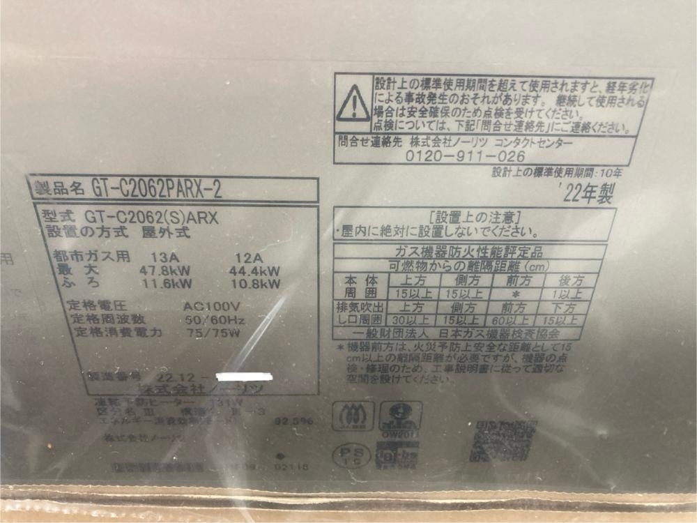 ノーリツ NORITZ ■商品名 ガス風呂給湯器 ■型番 GT-C2062PARX-2 |