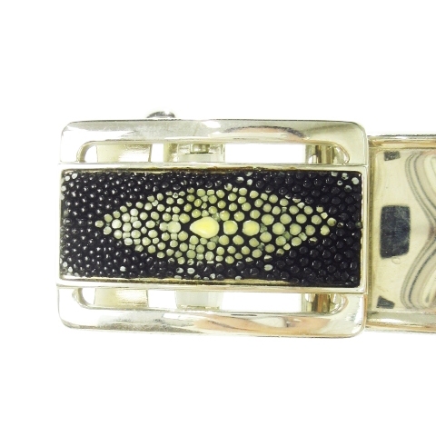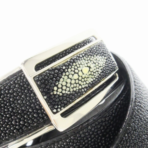 スティングレイ レザー ベルト レザー エイ革 ワンポイント ローラーバックル 45 114cm 黒 ブラック /CK32 ■GY11 メンズ