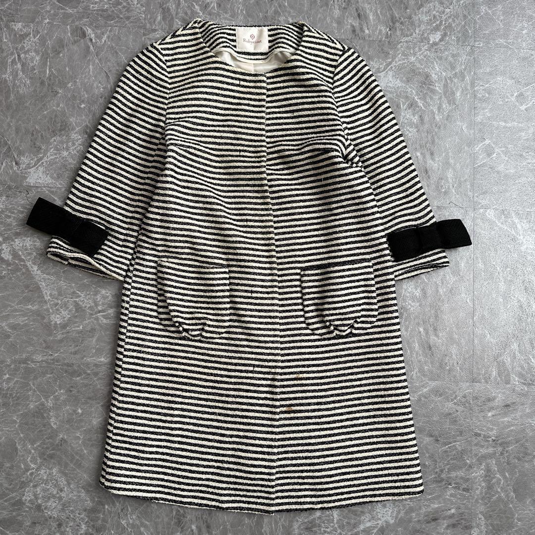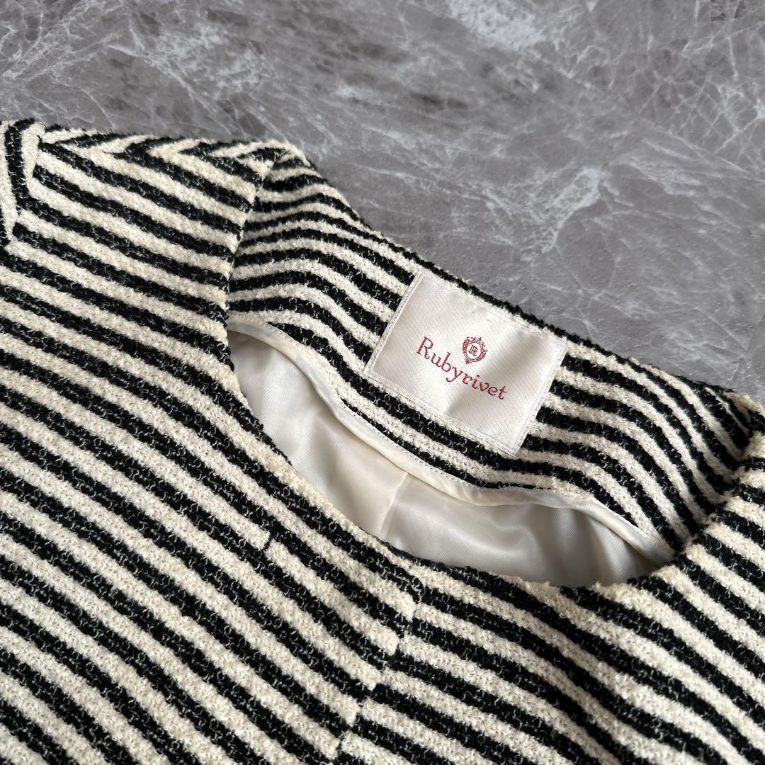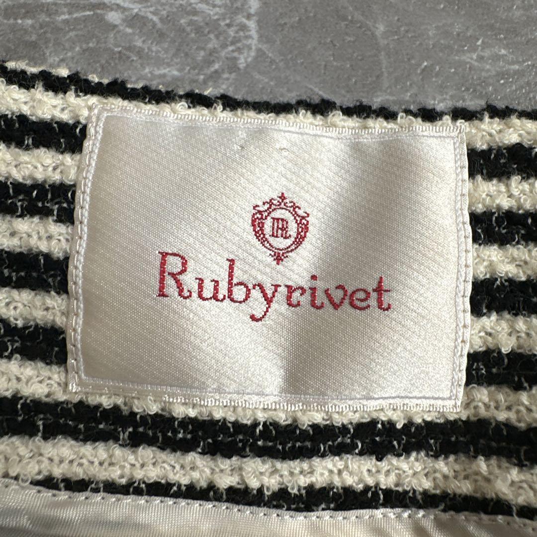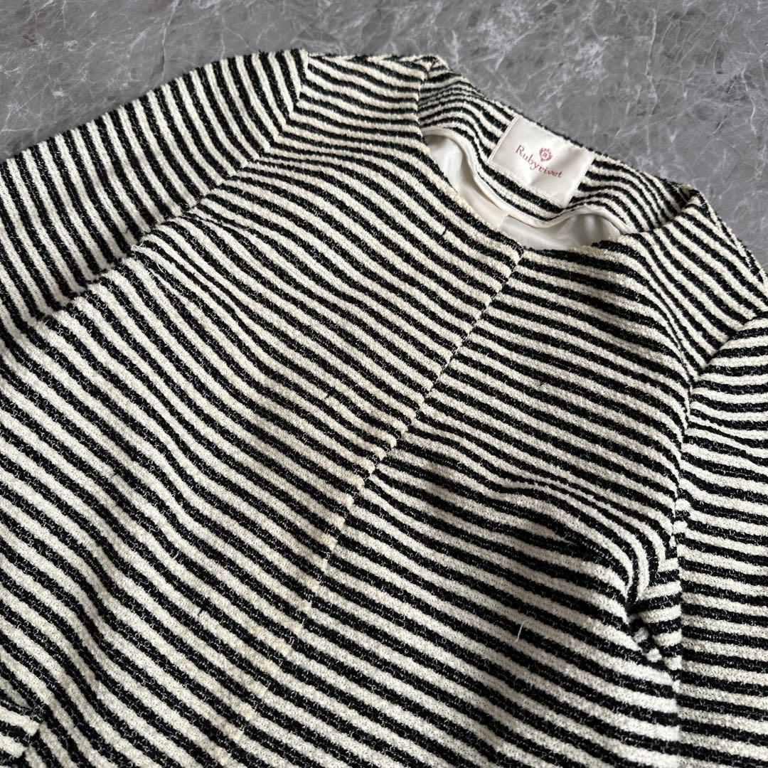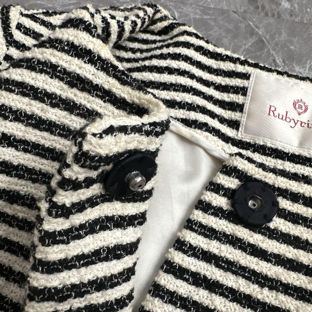 ルビーリベット(38)チュニック*ツイード*ボーダー*スナップボタン*裏地*ノーカラー*