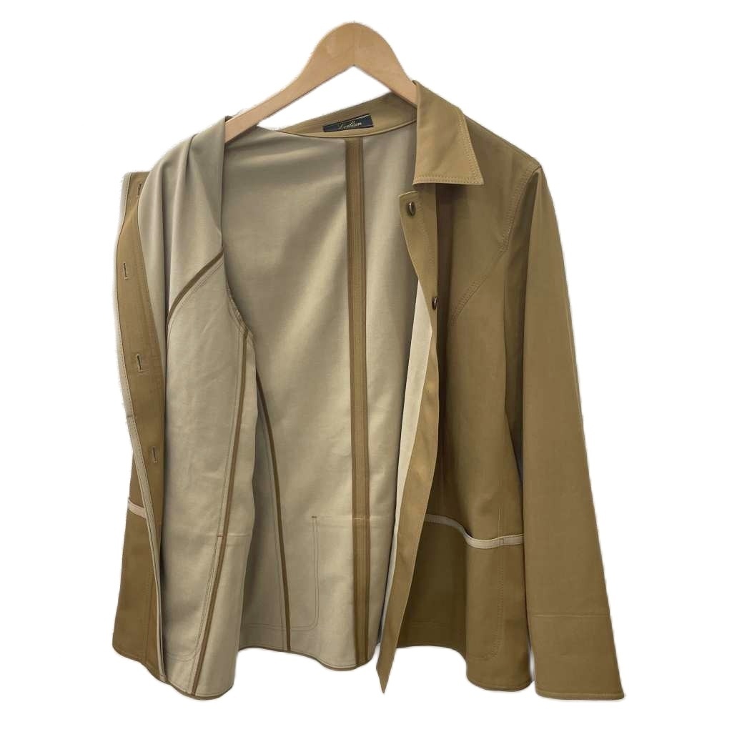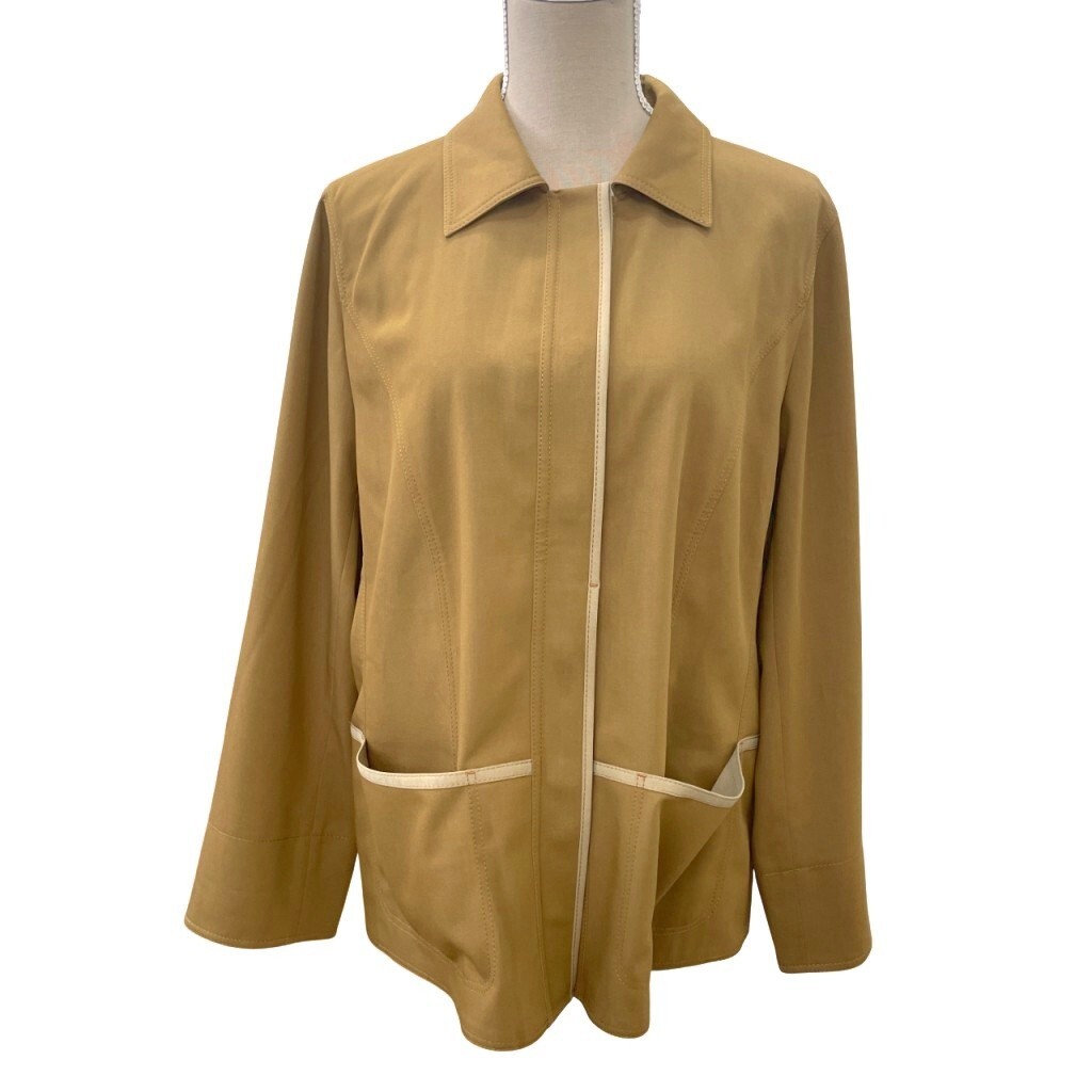 レリアン Leilian 美品 ジャケット 比翼ボタン 大きいサイズ 15+ 3L 茶 ブラウン KS-1501655 ■GY09 レディース