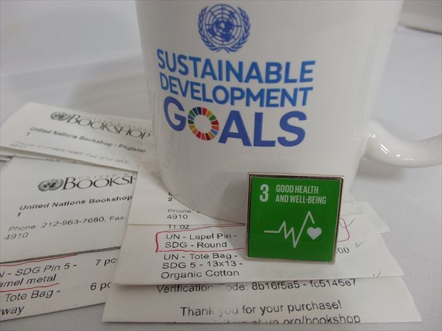 SDGsピンバッジ 1個(1540円税込)「3. すべての人に健康と福祉を」(国連ブックショップ購入・送料無料・新品未使用)UN53