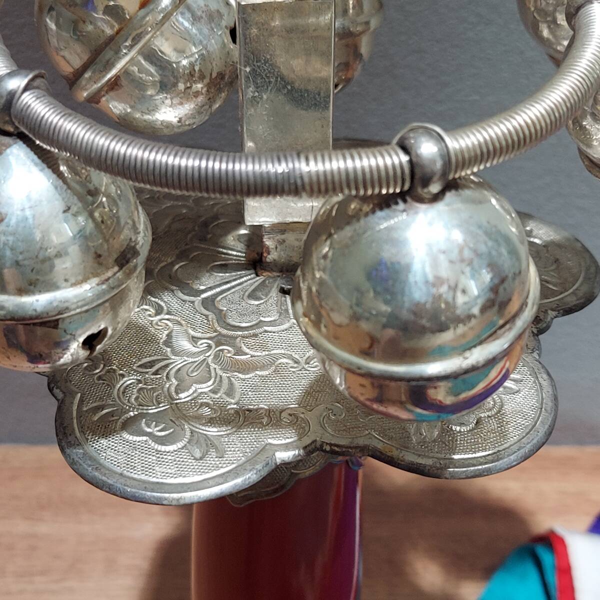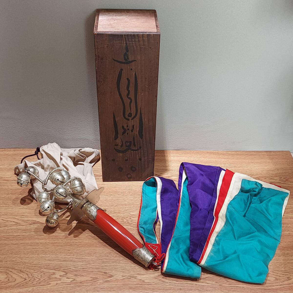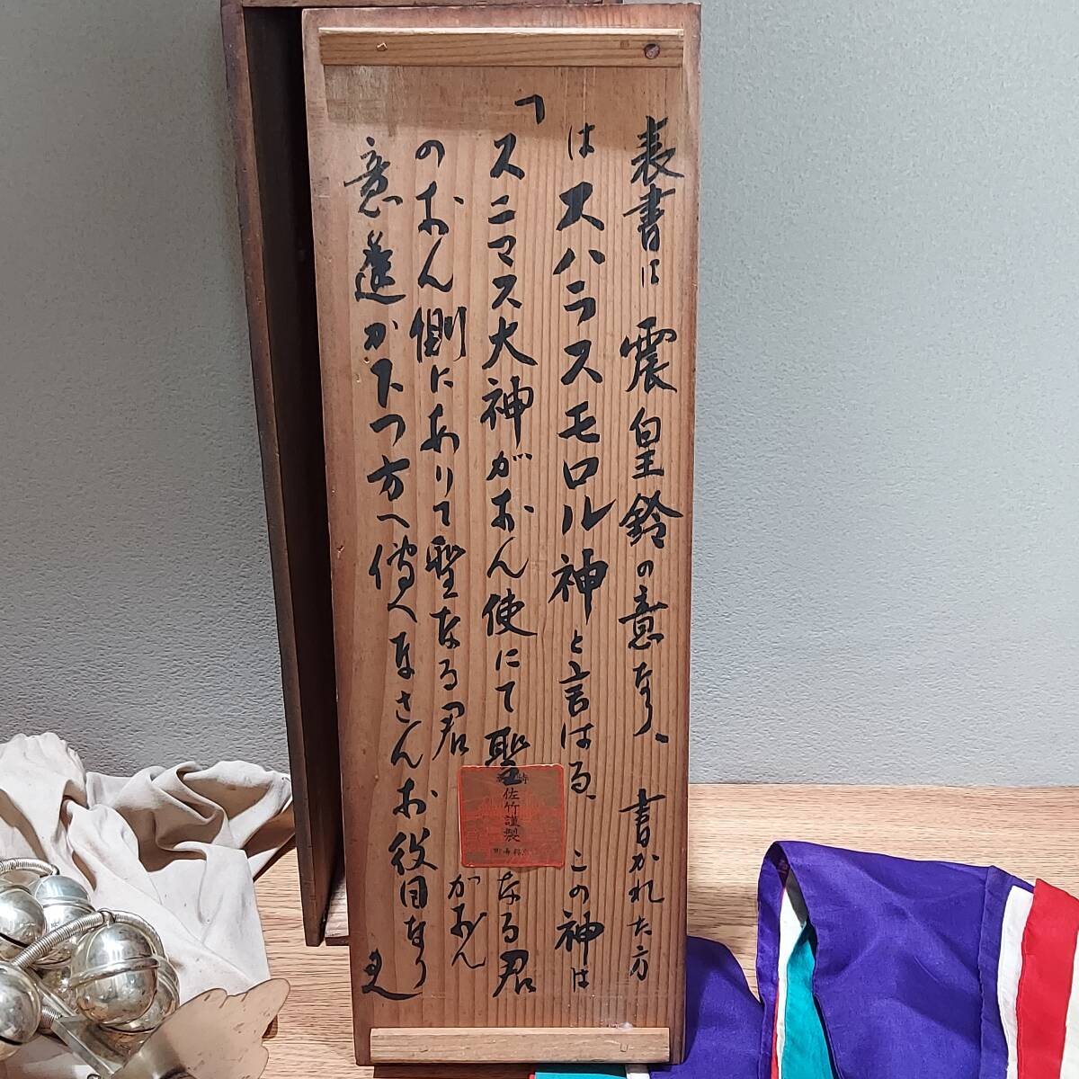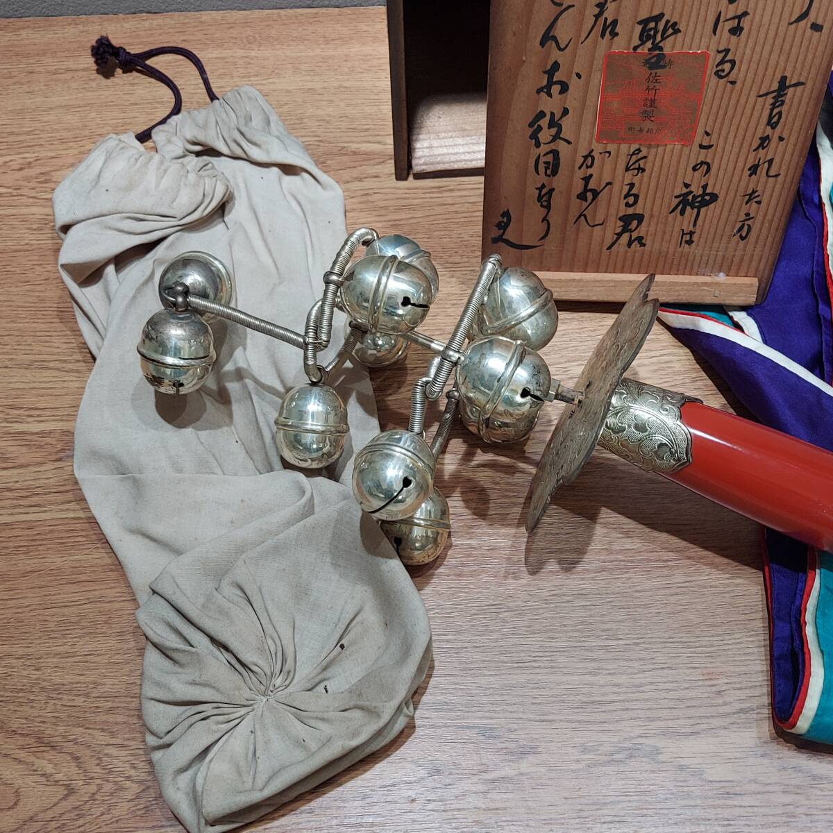 | 京都佐竹謹製 神事道具 神楽鈴 巫女鈴 震皇鈴 彫金金具 五色布付 鳴物 仏教美術 スハラスモロル神 新興宗教? サイズ約: 鈴本体 長さ35cm 幅10cm 五色布 長さ135cm 幅14cm 古いものの為、傷・汚れ色褪せ等あります。 箱書きあり、スニマス大神等ありますが、不明です。 中古品のため、画像では写しきれないクスミ、汚れ・小傷等ある場合がございます。 画像をご確認いただき、ご理解の上、ご入札をお願いいたします。 |