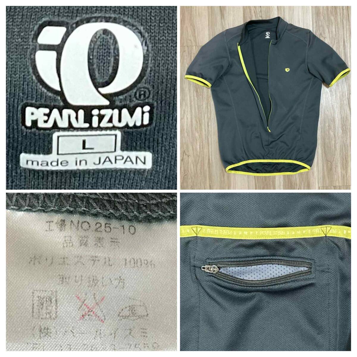 送料230★パールイズミ Lサイズ メンズ 半袖 サイクルジャージ 日本製 PEARL IZUMI 速乾素材 3+1ポケット 中古 良質品 n649 ダークグレー系