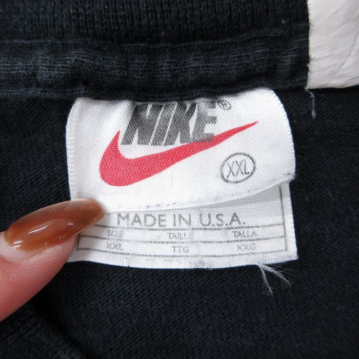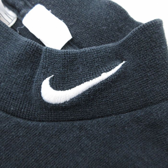 【商品名】 XL★古着 ナイキ NIKE 長袖 ビンテージ Tシャツ メンズ 90年代 90s ワンポイントロゴ 大きいサイズ モックネック ハイネック USA製 黒