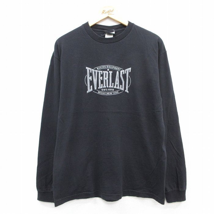 【商品名】 L★古着 長袖 Tシャツ メンズ EVERLAST コットン クルーネック 黒