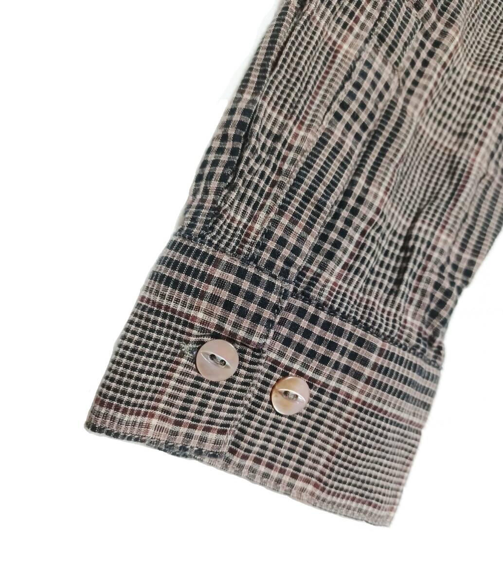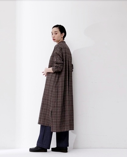 定番のシャーリングが施されたオリジナルのコットンシャツ生地です。ゆったりしたオーバーサイズデザインで羽織りとしても使えます。