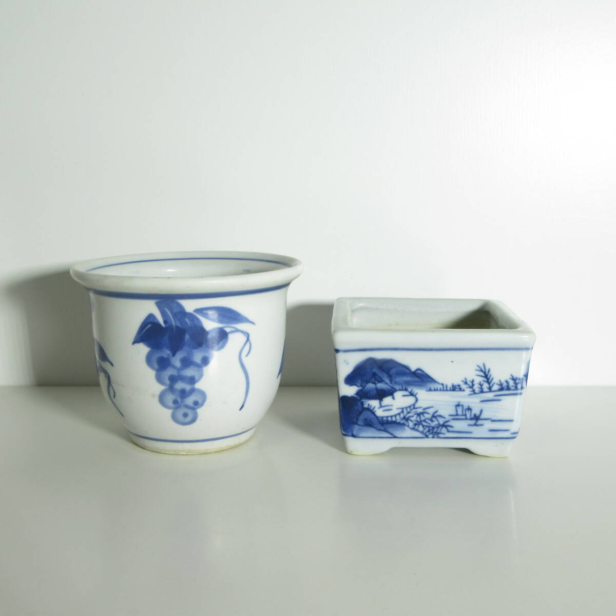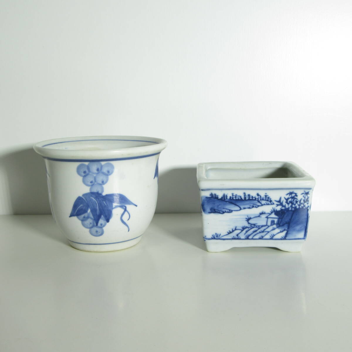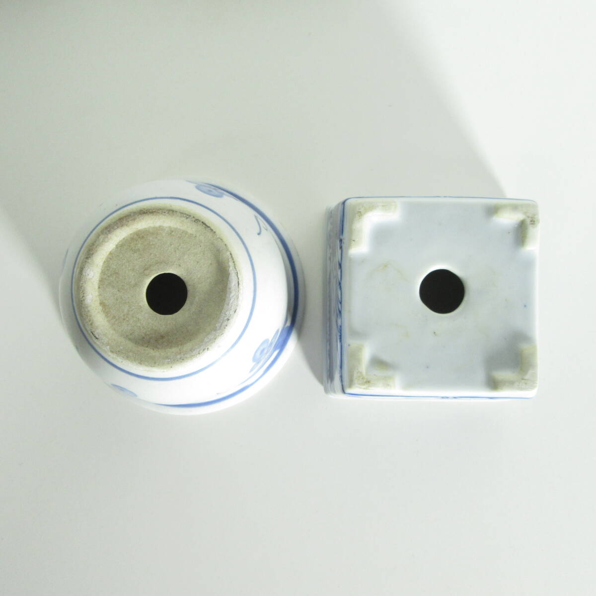 『 絵付 盆栽鉢 2鉢セット 』A-3/ 盆栽鉢 山野草鉢 植木鉢 丸鉢 角鉢 染付 磁器鉢 / 山野草 ミニ盆栽 小品盆栽などに!/【 盆栽用品・鉢 】