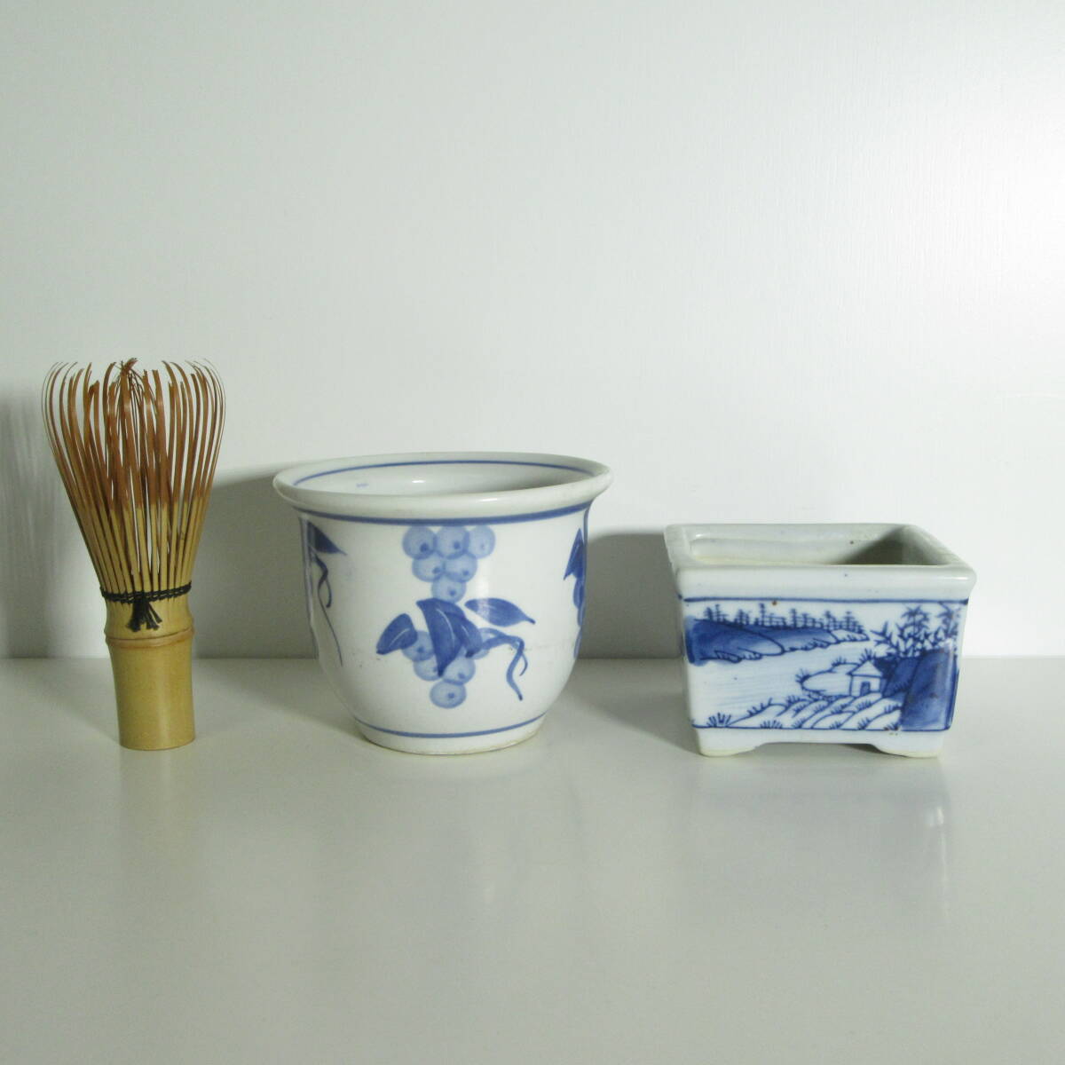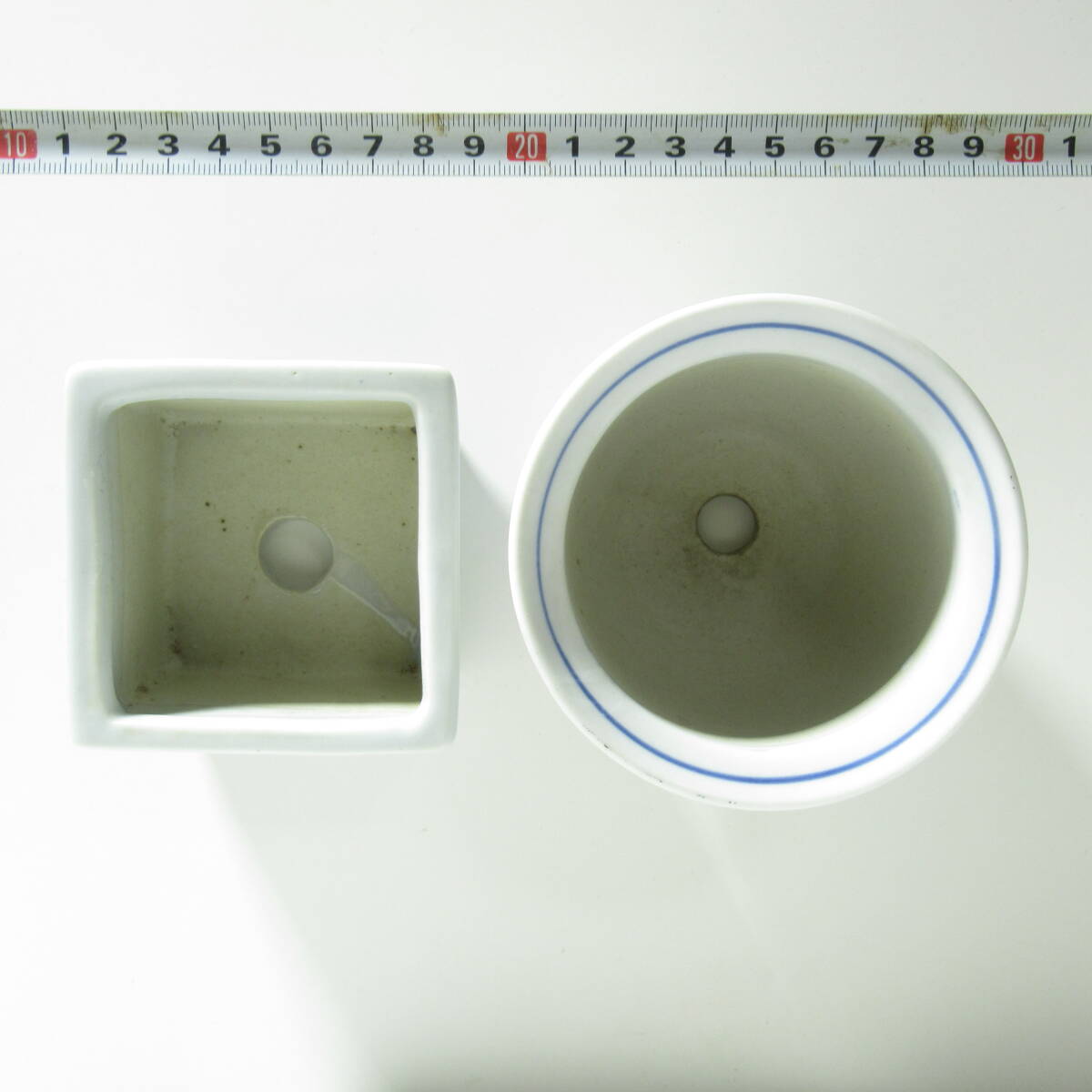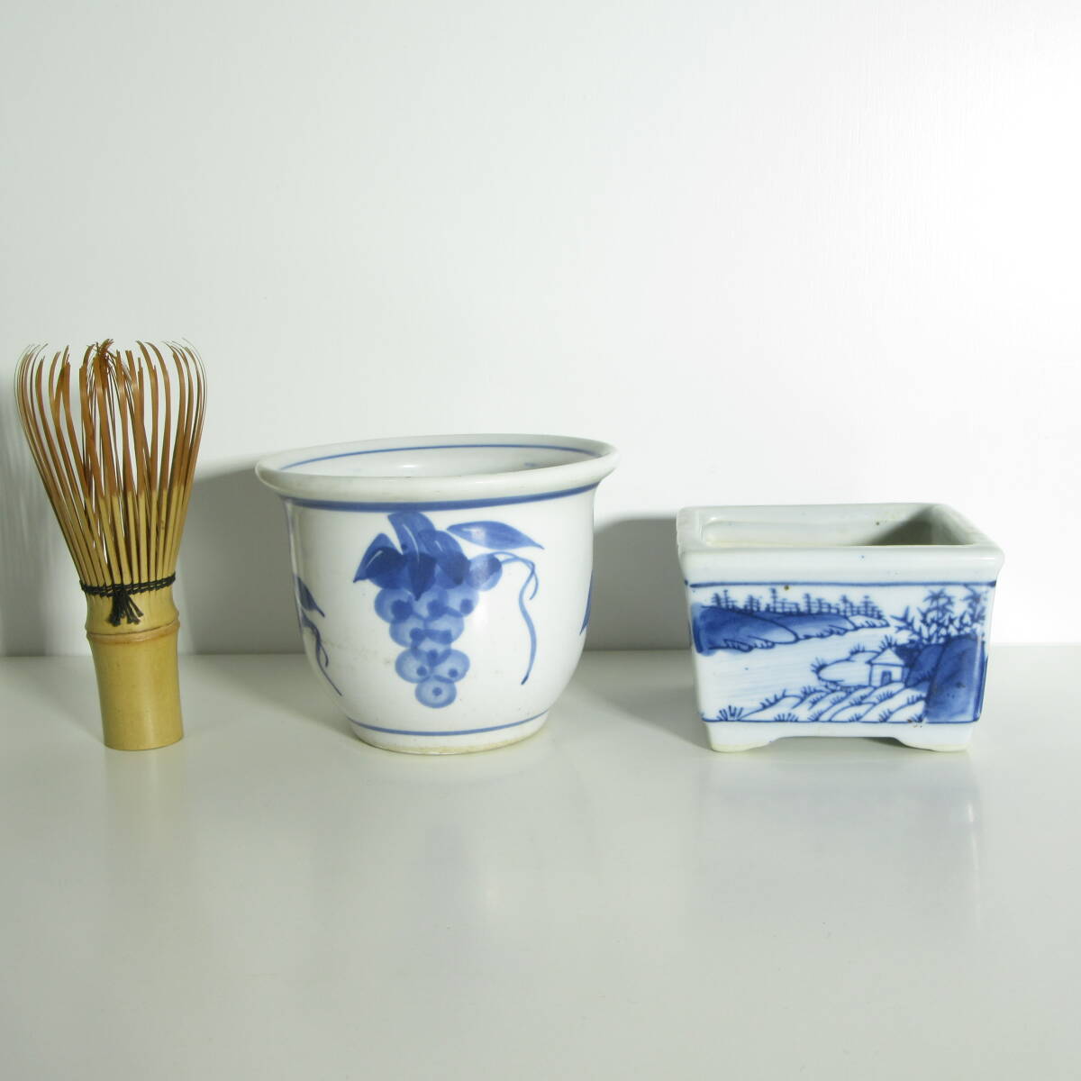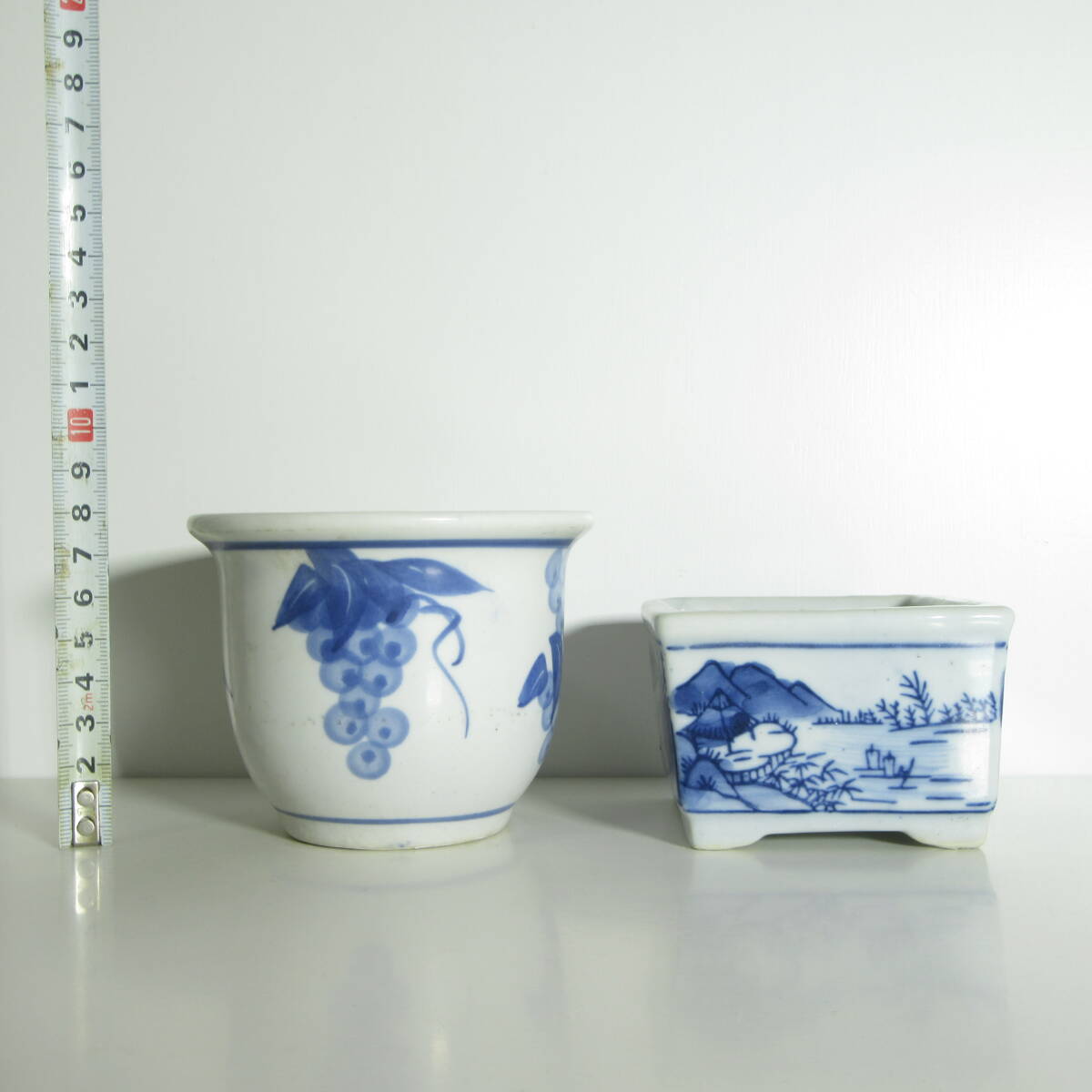 『 絵付 盆栽鉢 2鉢セット 』A-3/ 盆栽鉢 山野草鉢 植木鉢 丸鉢 角鉢 染付 磁器鉢 / 山野草 ミニ盆栽 小品盆栽などに!/【 盆栽用品・鉢 】