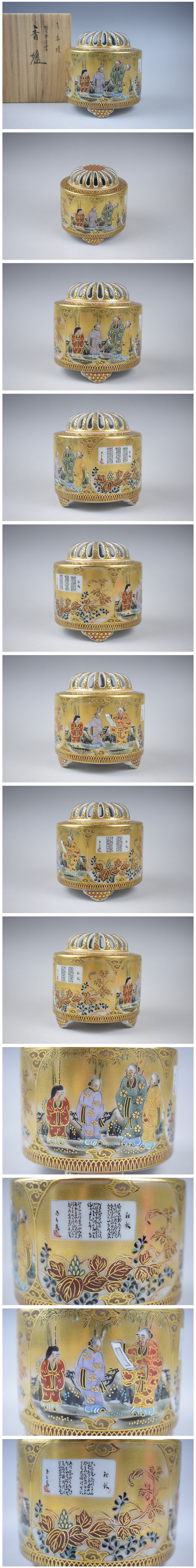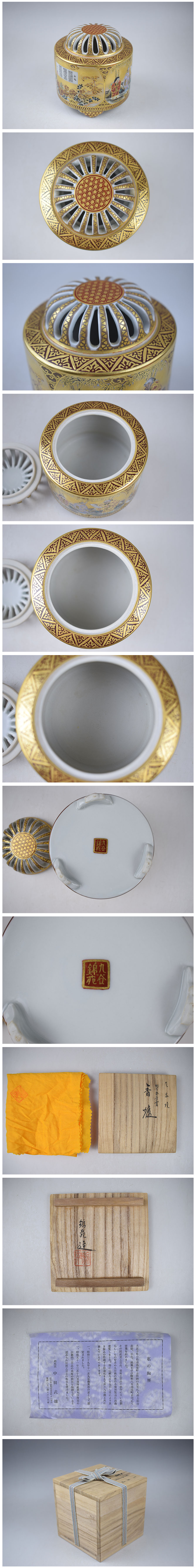 【錦苑造 九谷焼 細字金芳書香爐 金彩赤絵図香炉 共箱 真作保証】