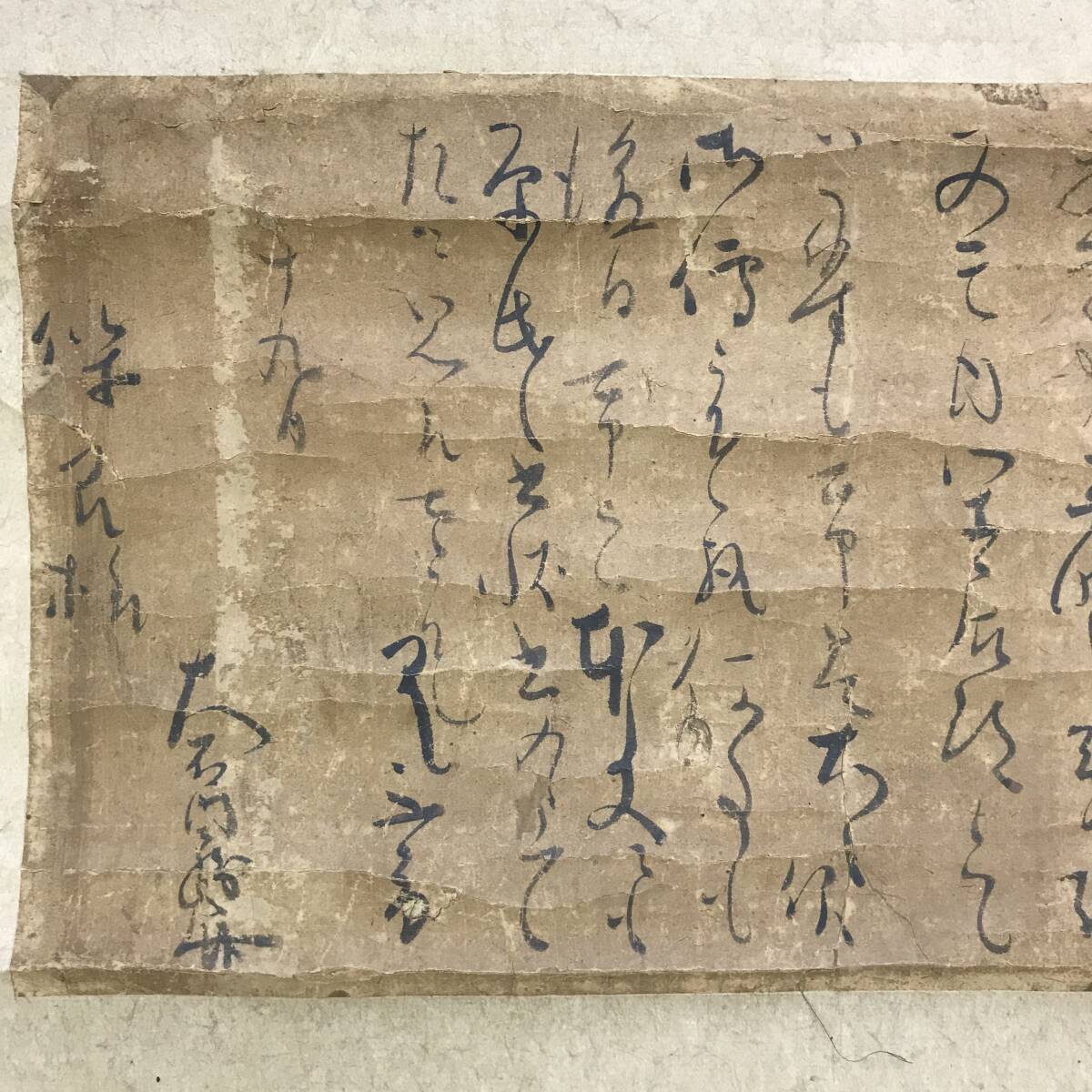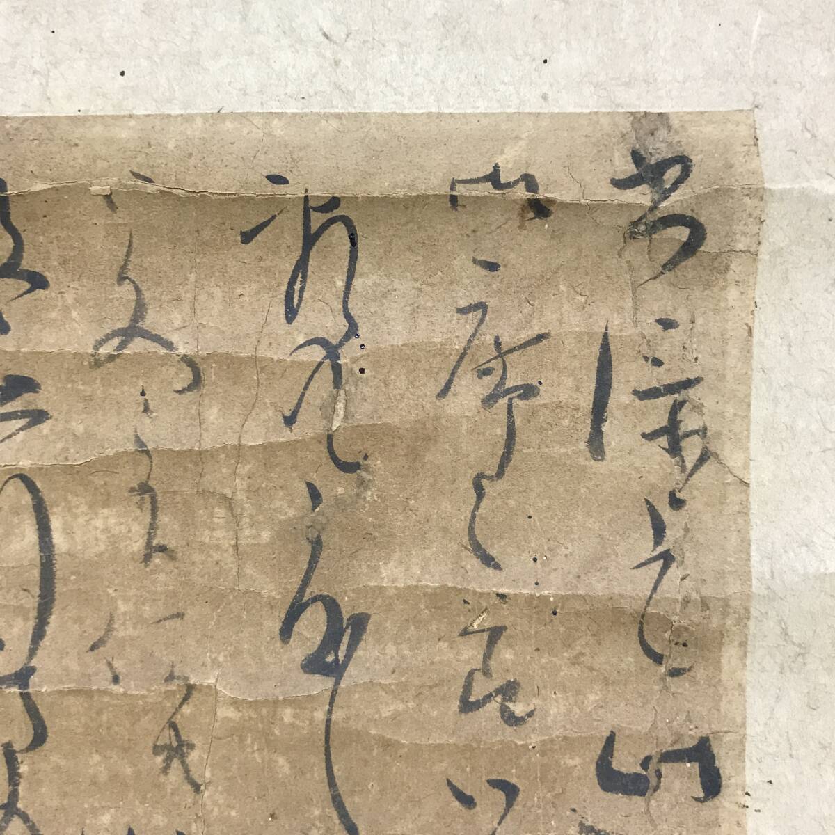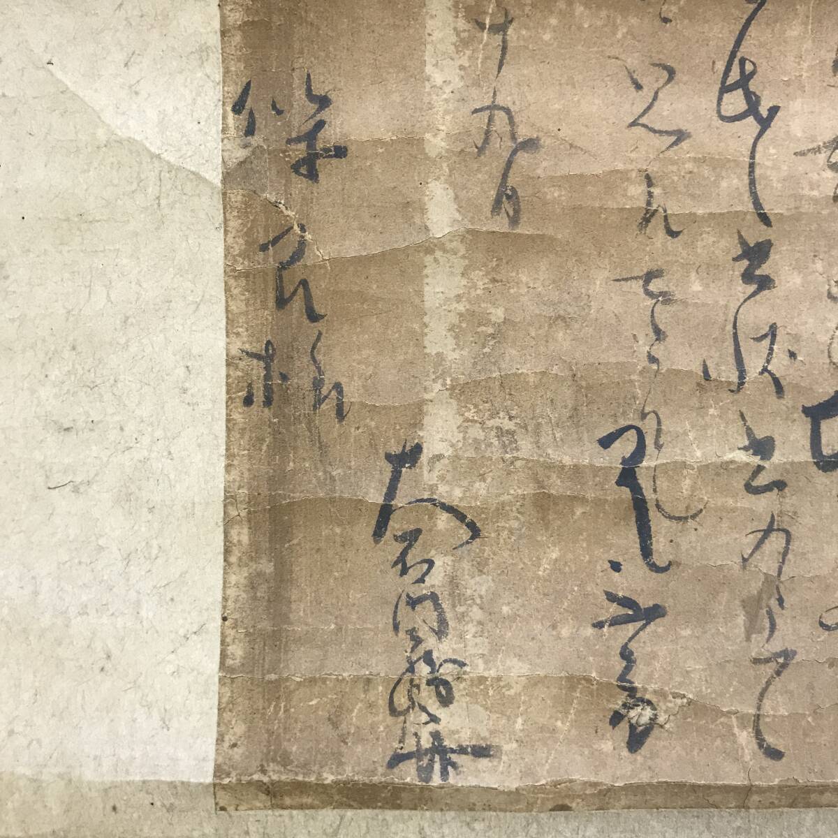 【作品状態】 本紙は紙本肉筆です。本紙は時代感あり、全体に汚れシミ、折れ、巻シワなどあります。表装は紙表装で、時代感あり、大きな水シミ、全体に折れ、巻シワ、虫穴などあります。