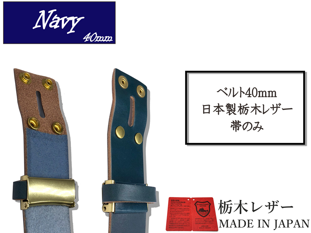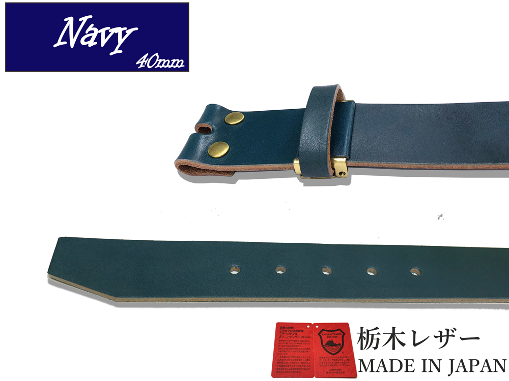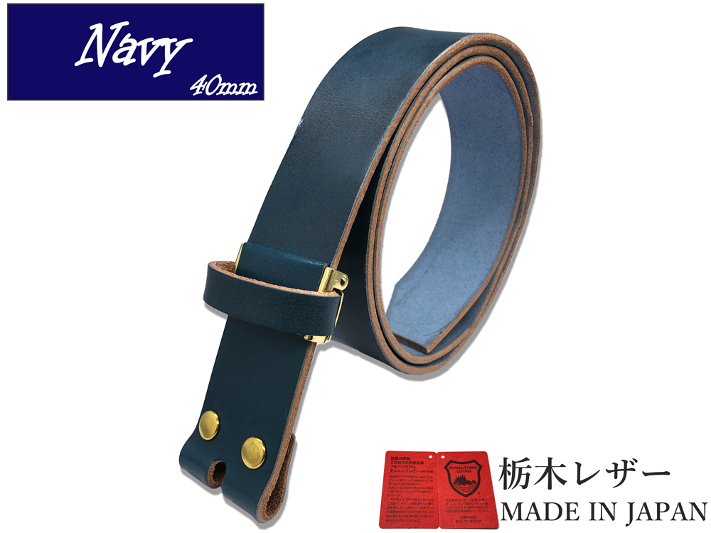 新品 栃木レザー カジュアルベルト Lサイズ メンズ 無地 帯のみ 本革 交換用 取り換え 牛革 40mm ネイビー 紺色 金ホック W041NVLG