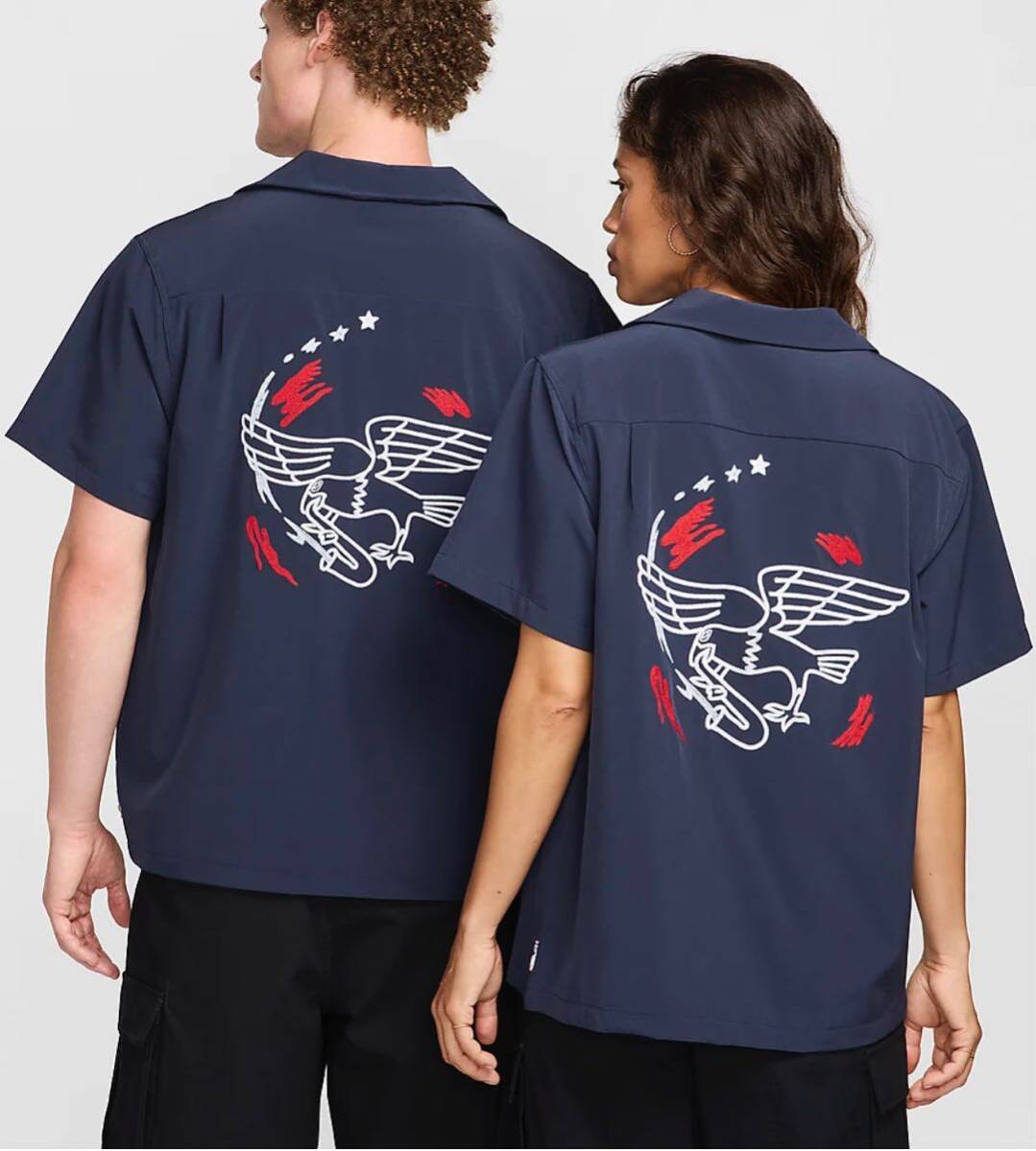 美中古 ナイキ パリ オリンピック スケートボード USA代表 シャツ ネイビー サイズ M ショートスリーブ ボタンアップ NIKE SKATEBOARD USA アメリカ となります。