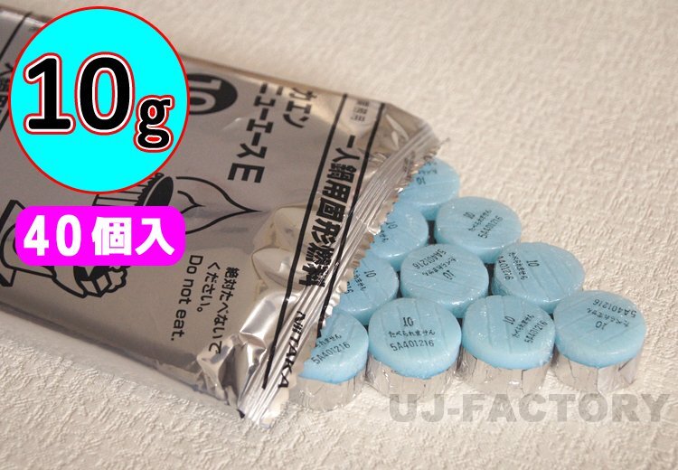 | 【 ここがポイント 】 ★多くのホテルや旅館で色々な料理に使用され、固形燃料の国内シェアナンバーワン! ★家族で好みの一人鍋が人気上昇中!また、アウトドアでの簡単調理に大活躍♪ ★カエン・ニューエースEの特徴 ①1個ずつ親切表示:すべてに製品サイズ(グラム数)と「食べられません」を表示しています。 ②手間いらず:アルミ箔のカップでそのままコンロに!廃棄も簡単です。 ③確実に着火:ロングライターの火で、直ぐに着火します。 ④すばやく加熱:初期火力が強いので、料理をどんどん加熱。 ⑤燃焼状態が安定:料理の出来上がりにバラつきがありません。 ⑥臭いが少ない:消臭剤配合で、消化時の臭いを低減(一部商品除く) ※製品は10g・15g・20g・25g・30g・35g・40gで、用途に合わせて最適なサイズをご利用ください。