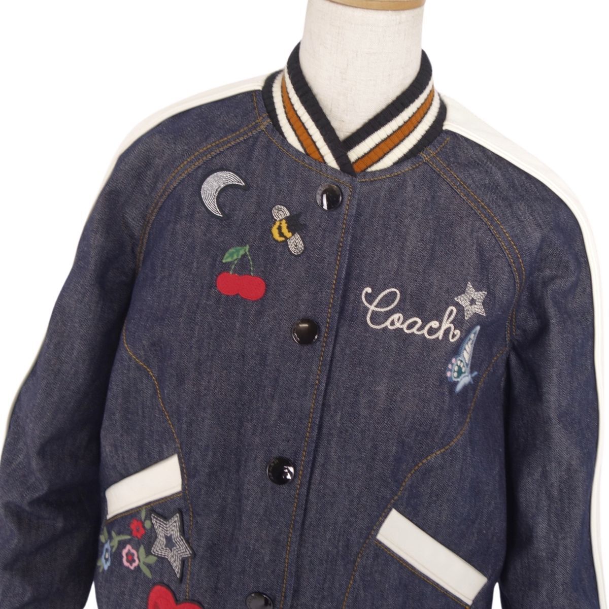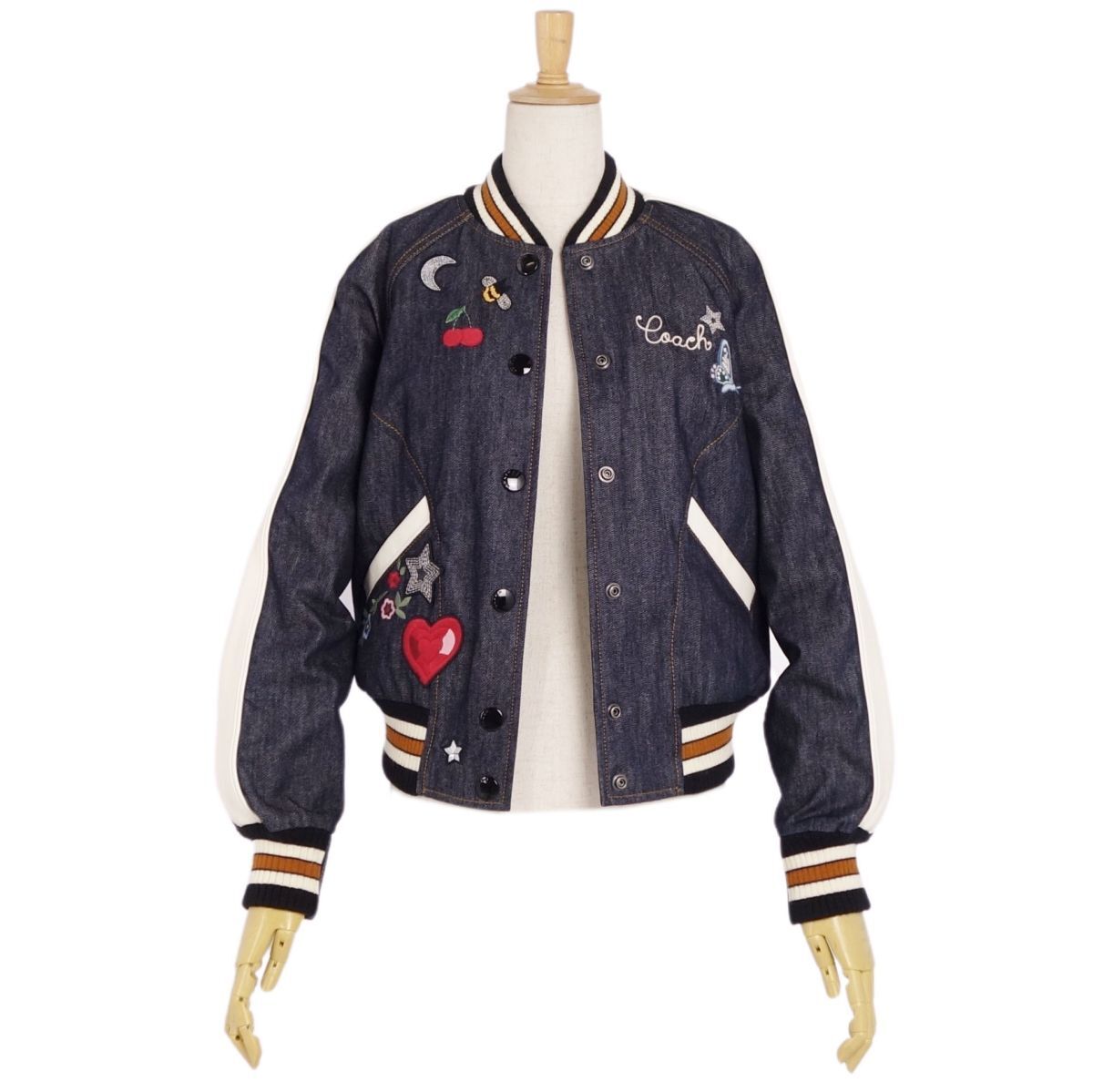 美品 コーチ COACH ブルゾン スタジアムジャンパー スタジャン バーシティジャケット デニム アウター レディース XS |