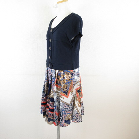 ジュドランジュ JUS D'ORANGE ワンピース 半袖 膝丈 紺 4 *T735 レディース