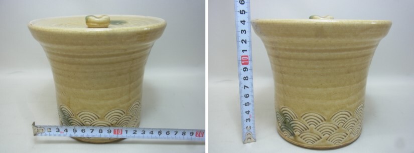 | 商品説明 | 陶器製の水指です。 共箱に「鐵山」の印があります。 譲り受けたもののため、正確な年代や本来の状態など詳細は不明です。 長期自宅保管品です。 若干の経年感はありますが、良好な状態かと思います。 画像にあるものが全て、現状でのお渡しとなりますので、 以上の点をご了承のうえご検討をお願いいたします。 状態に関しましては、画像にてご判断と十分なご検討をお願い致します。 長期自宅保管の古い物になりますので、ご理解いただける方のご入札いただけますと幸いです。 気になる点がございましたら、ご入札前にご質問くださいませ。 撮影した照明により、色合いが多少違って見えるかもしれませんが、ご了承ください。 サイズ 径:約16cm 高さ:約15cm ※素人採寸につき、誤差ご了承ください 【発送方法】 ・ゆうパック/80サイズ |
