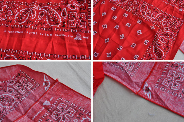 皆さんご存知の普通サイズの新品のバンダナを3枚つなぎ合わせた品になります