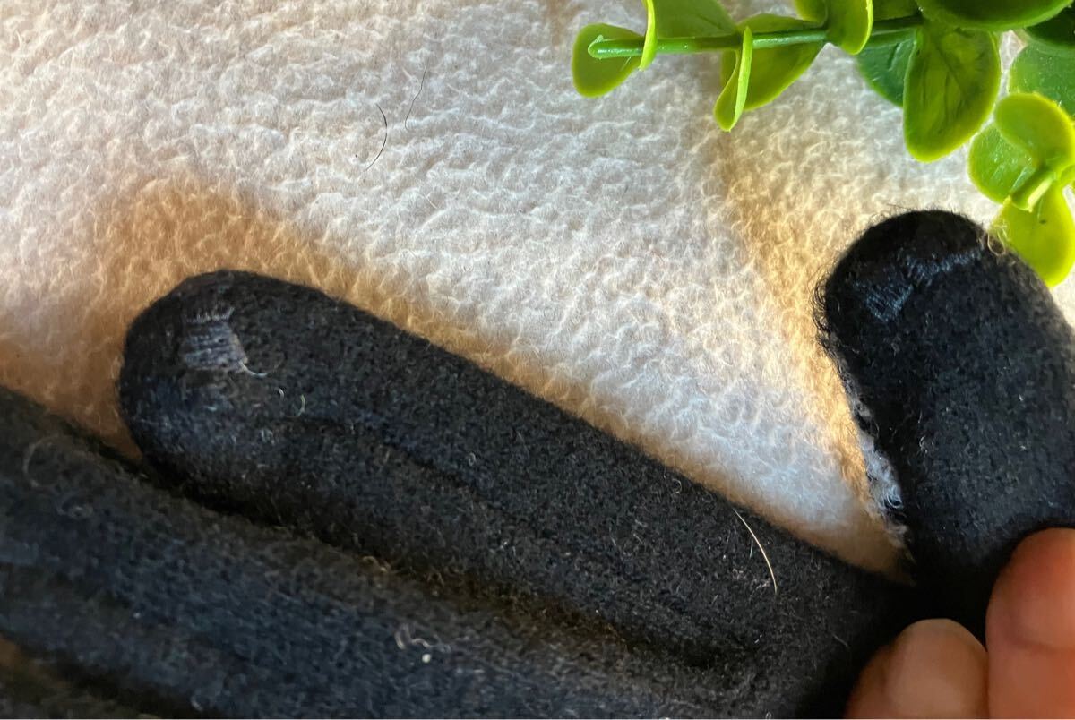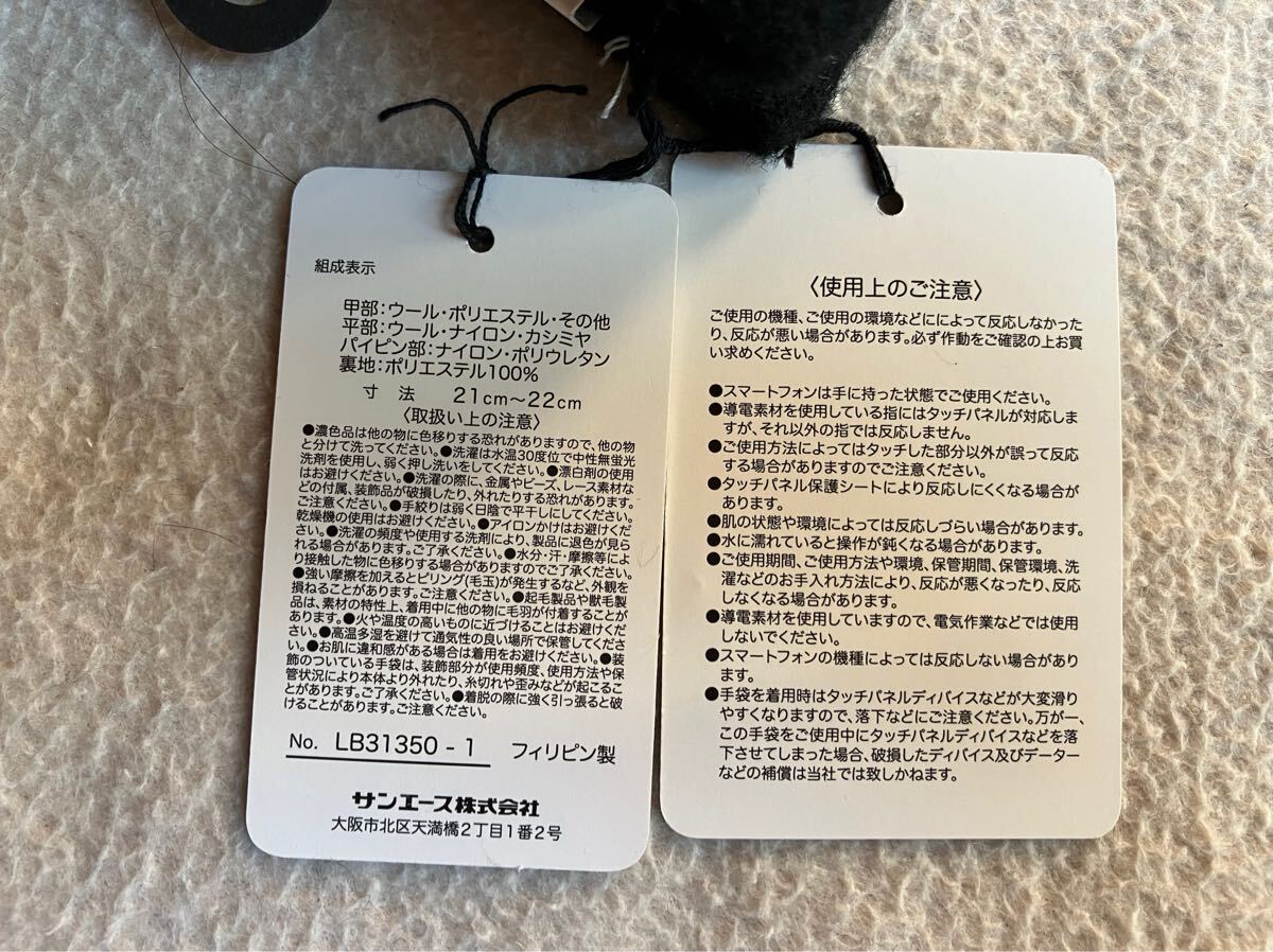 両手親指、人差し指にスマホ対応の刺繍があります。