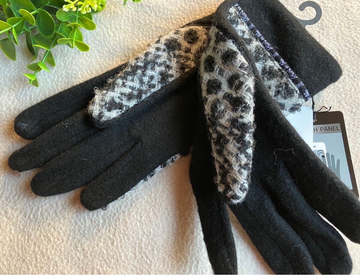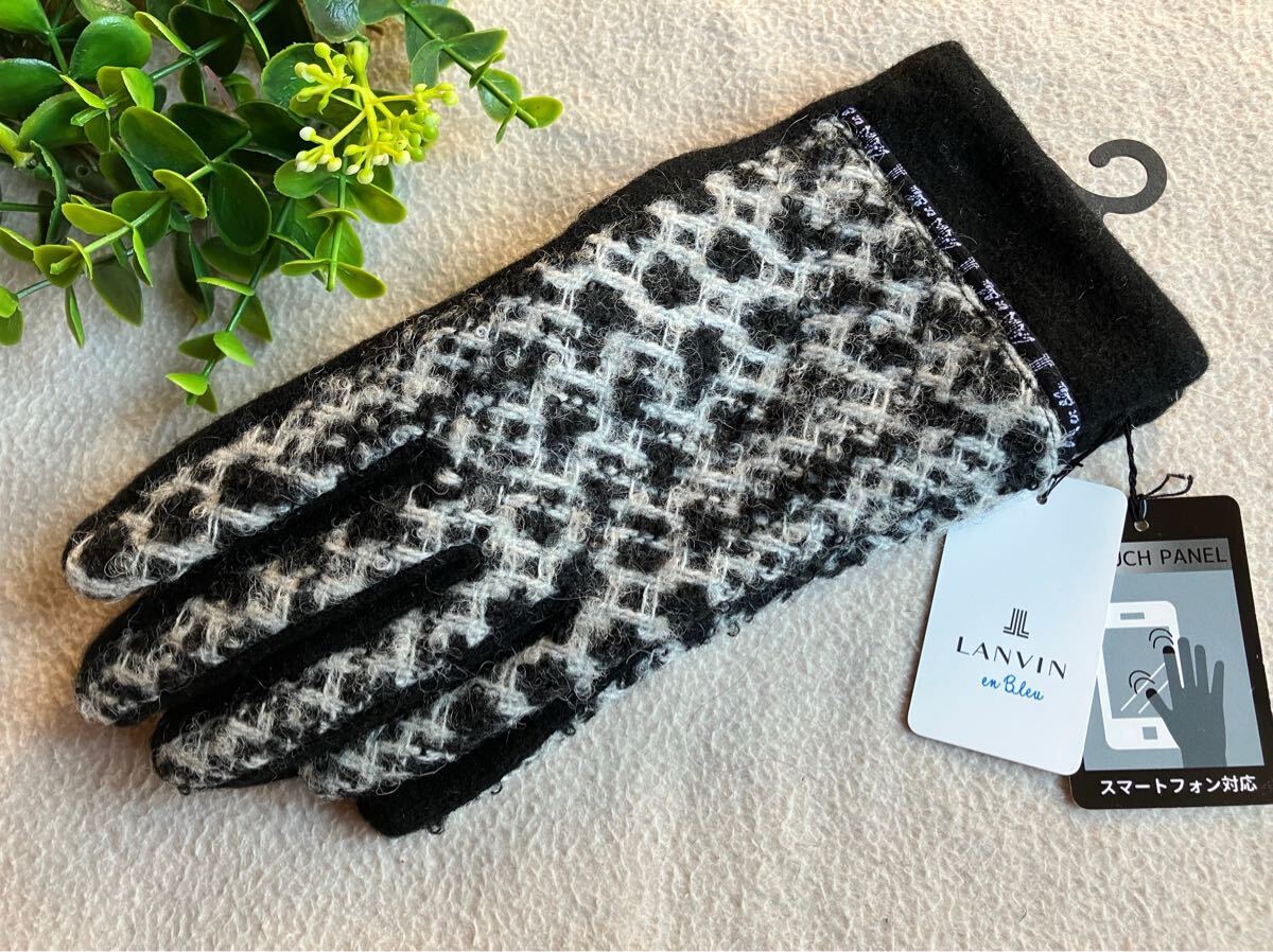 ★新品★ LANVIN en Bleu ランバンオンブルー 格子柄 手袋 レディース スマホ対応 ブラック系