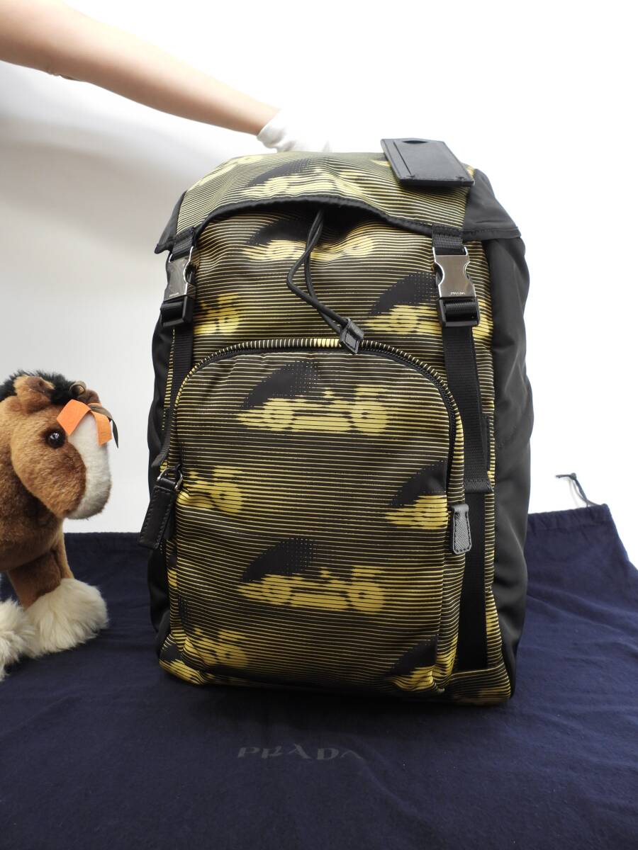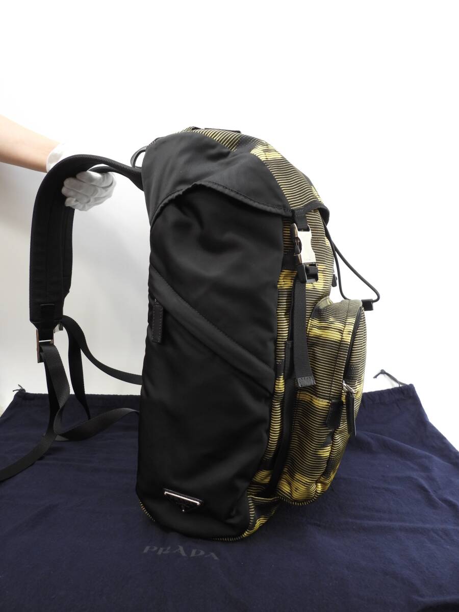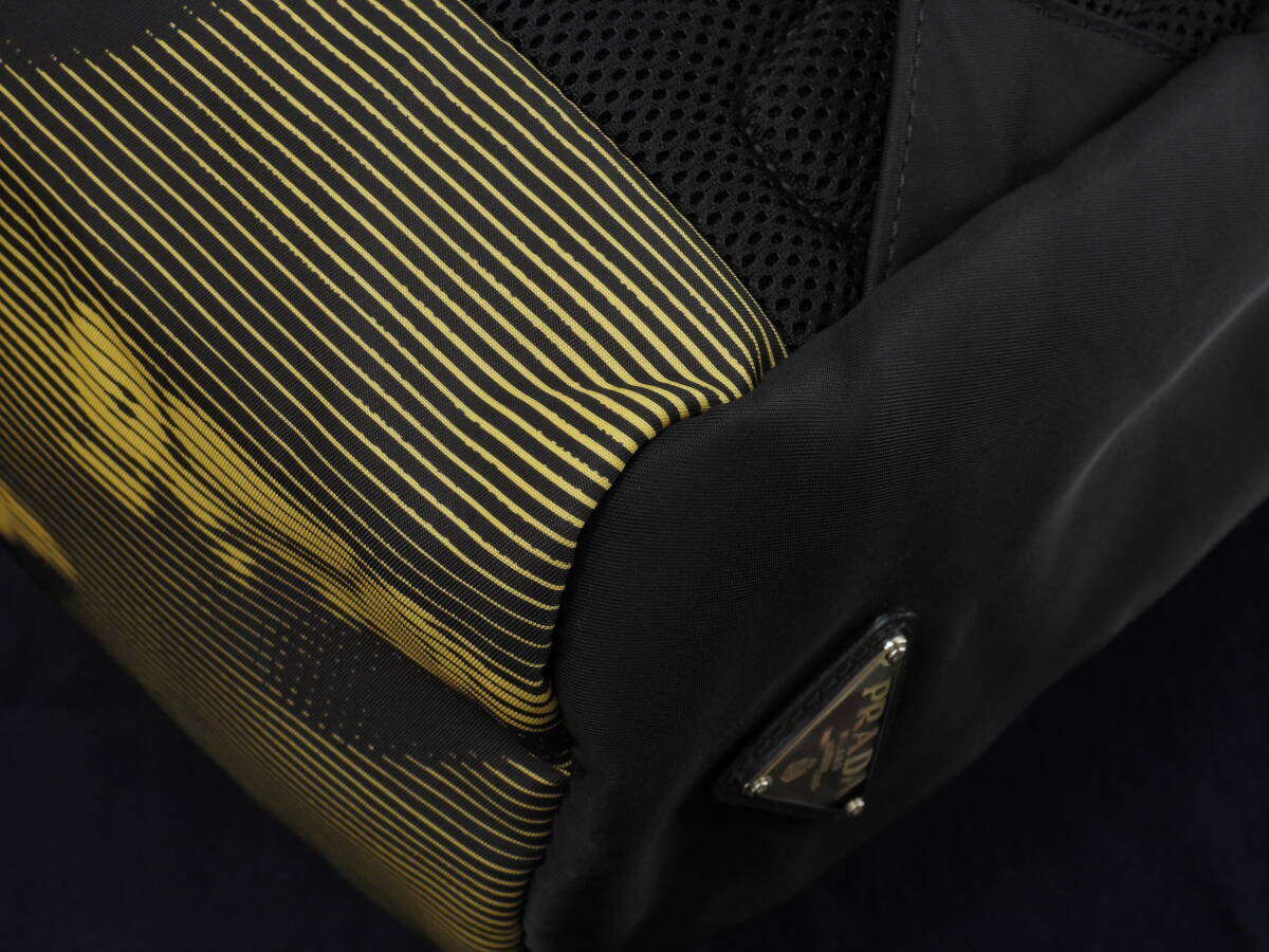 プラダ バックパック大 ナイロン 黄黒 ハンドバッグ リュックサック大 極美品@56