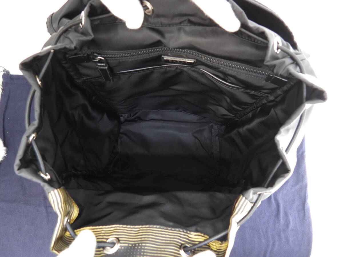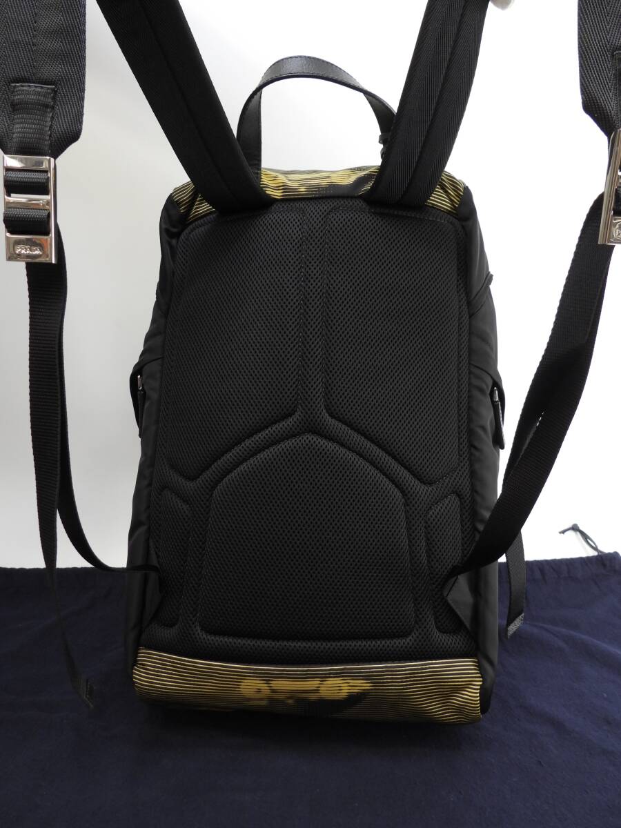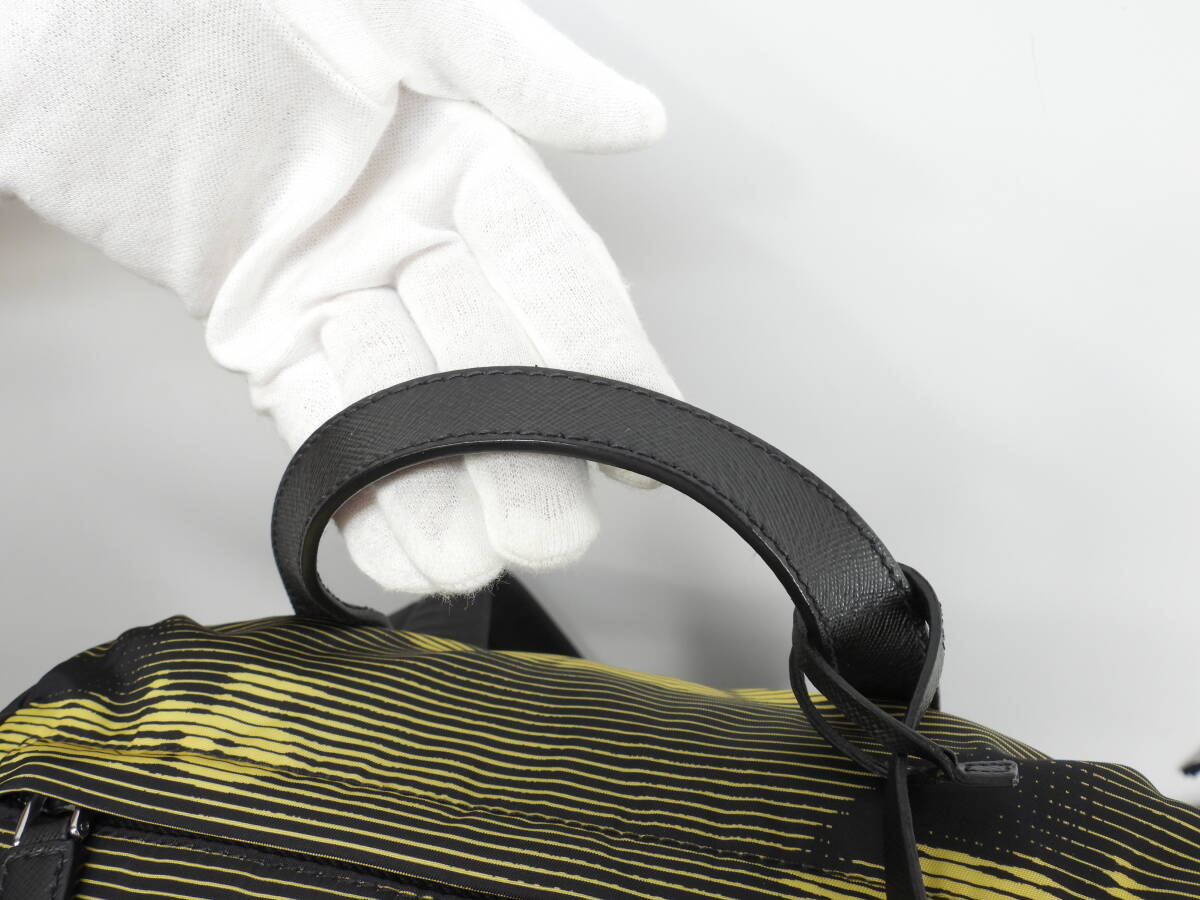 プラダ バックパック大 ナイロン 黄黒 ハンドバッグ リュックサック大 極美品@56