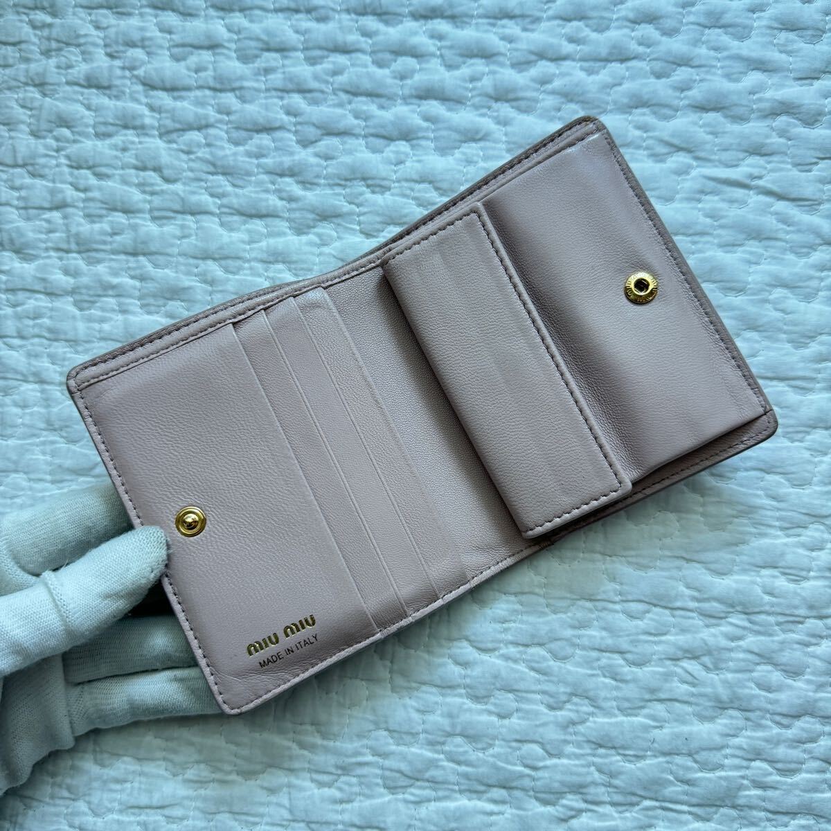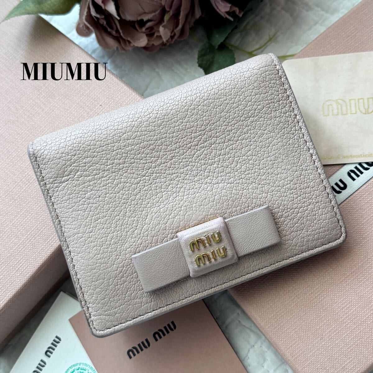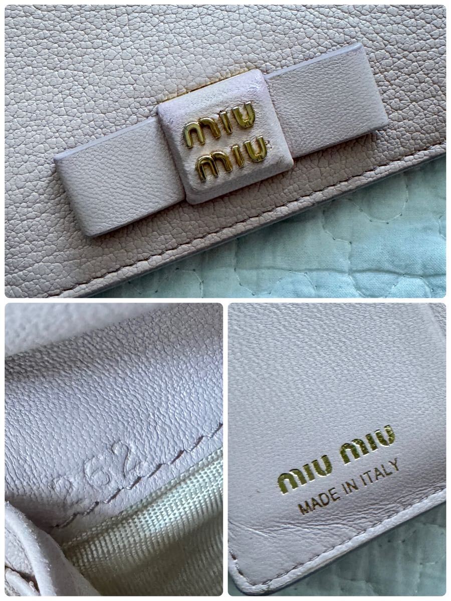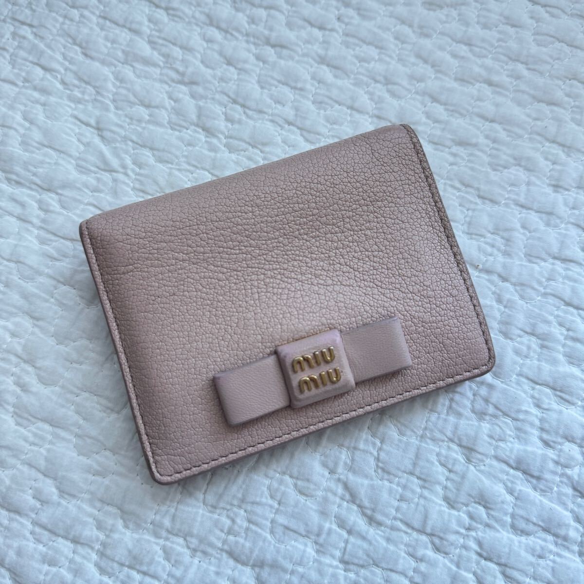 MIUMIU ミュウミュウ 二つ折り財布 リボン マドラスレザー 5mv204 ピンク ゴールド金具