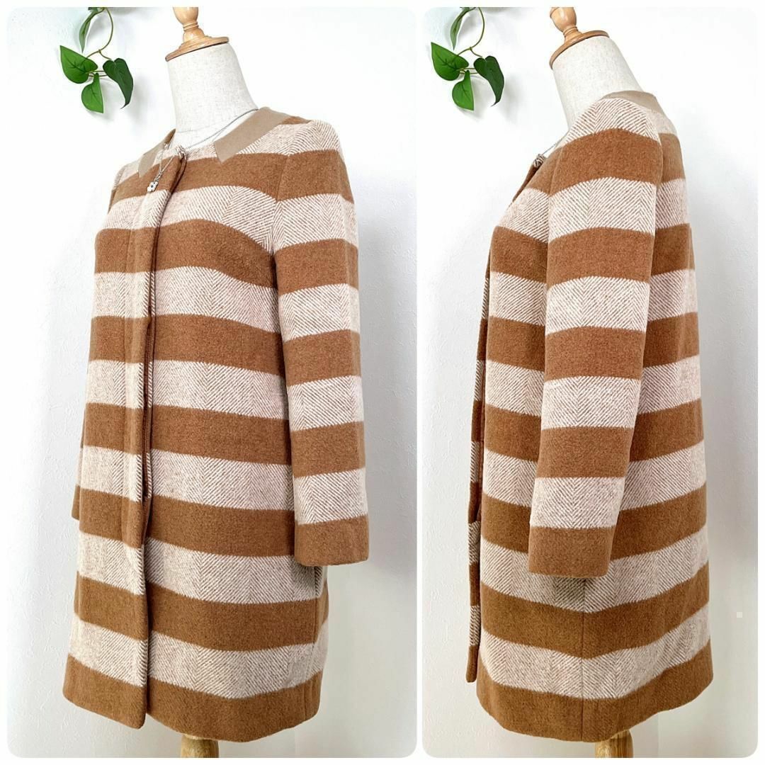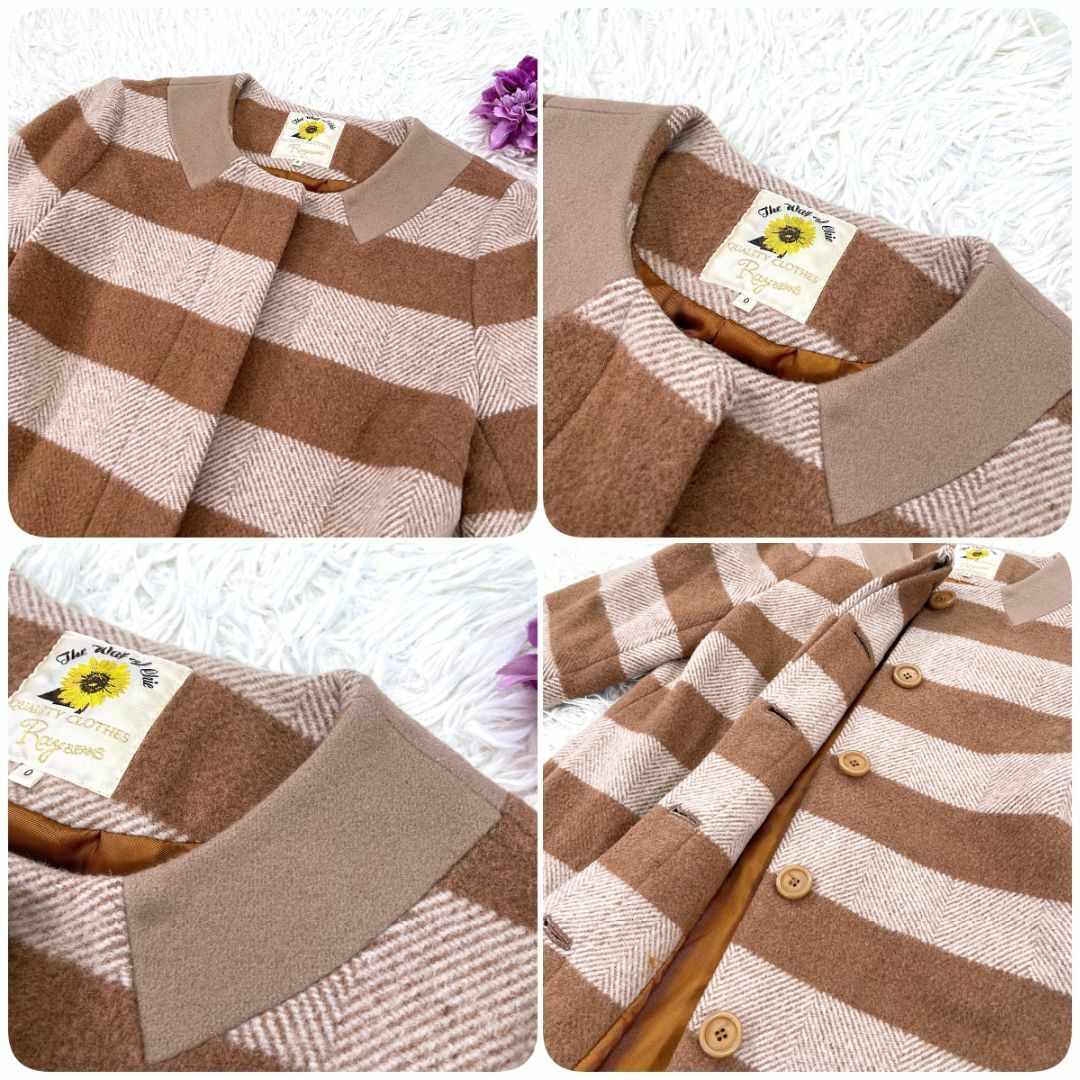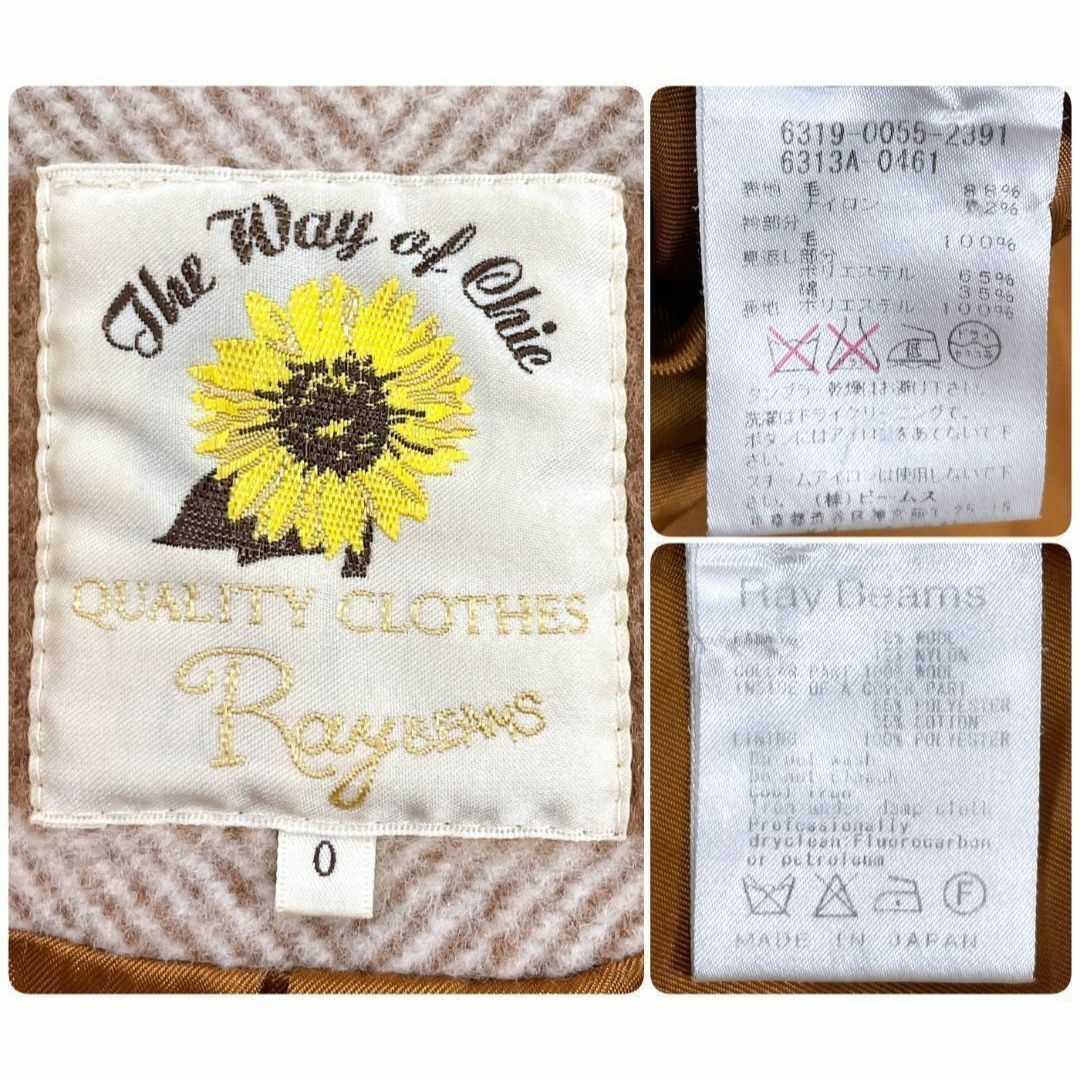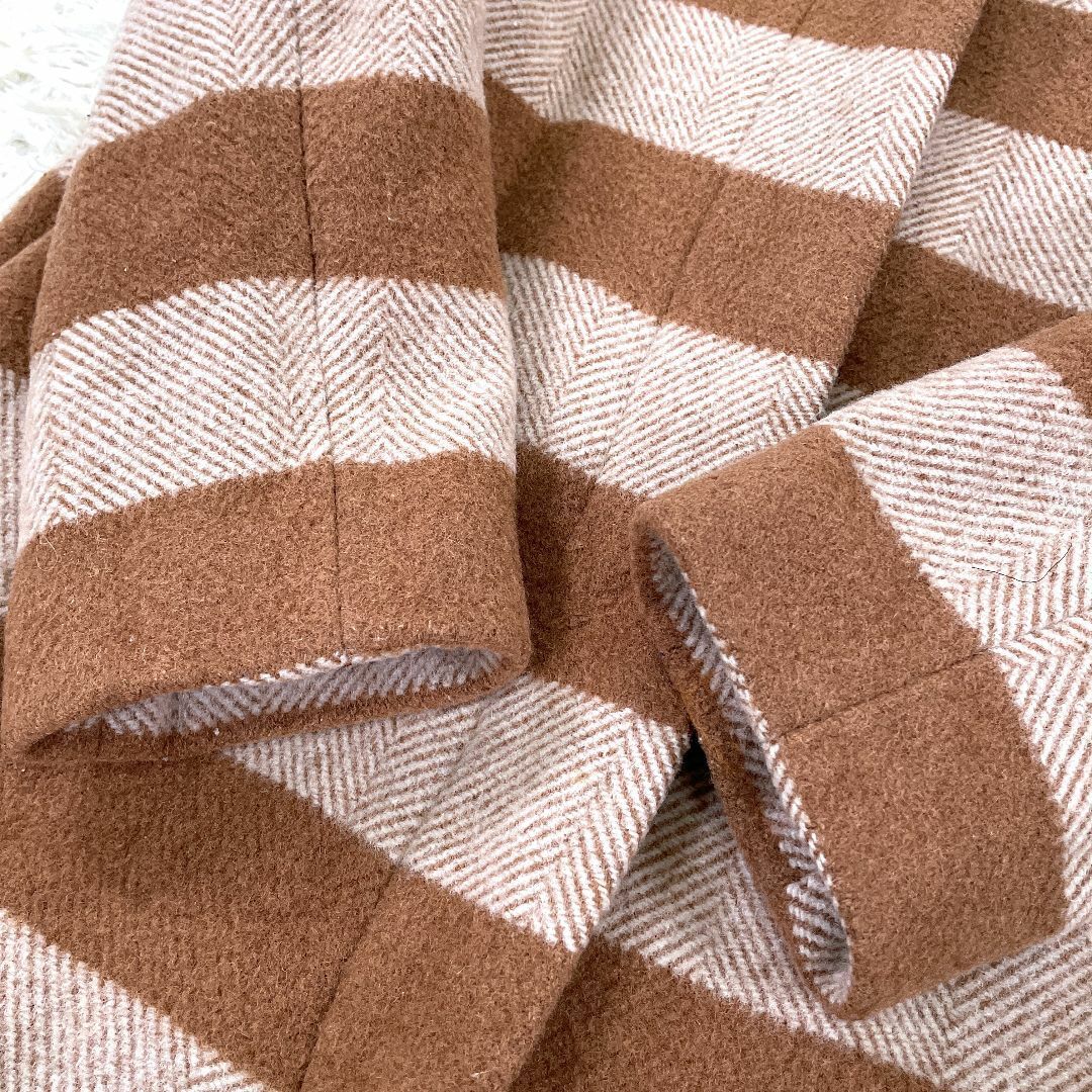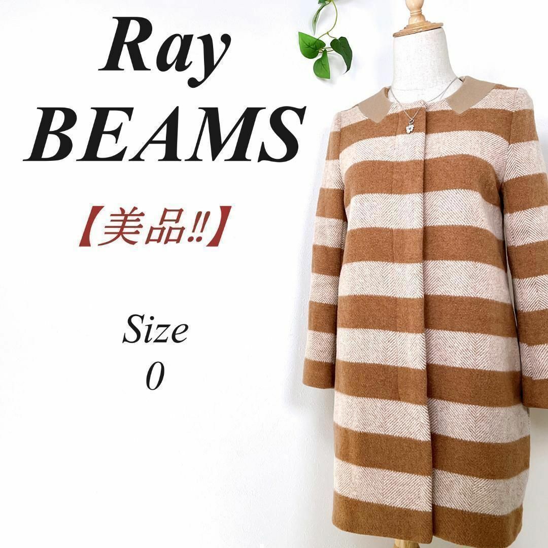 【美品】 Ray BEAMS ボーダー ヘリンボーンコート 0 コクーン ウール レイビームス ロングコート 秋冬