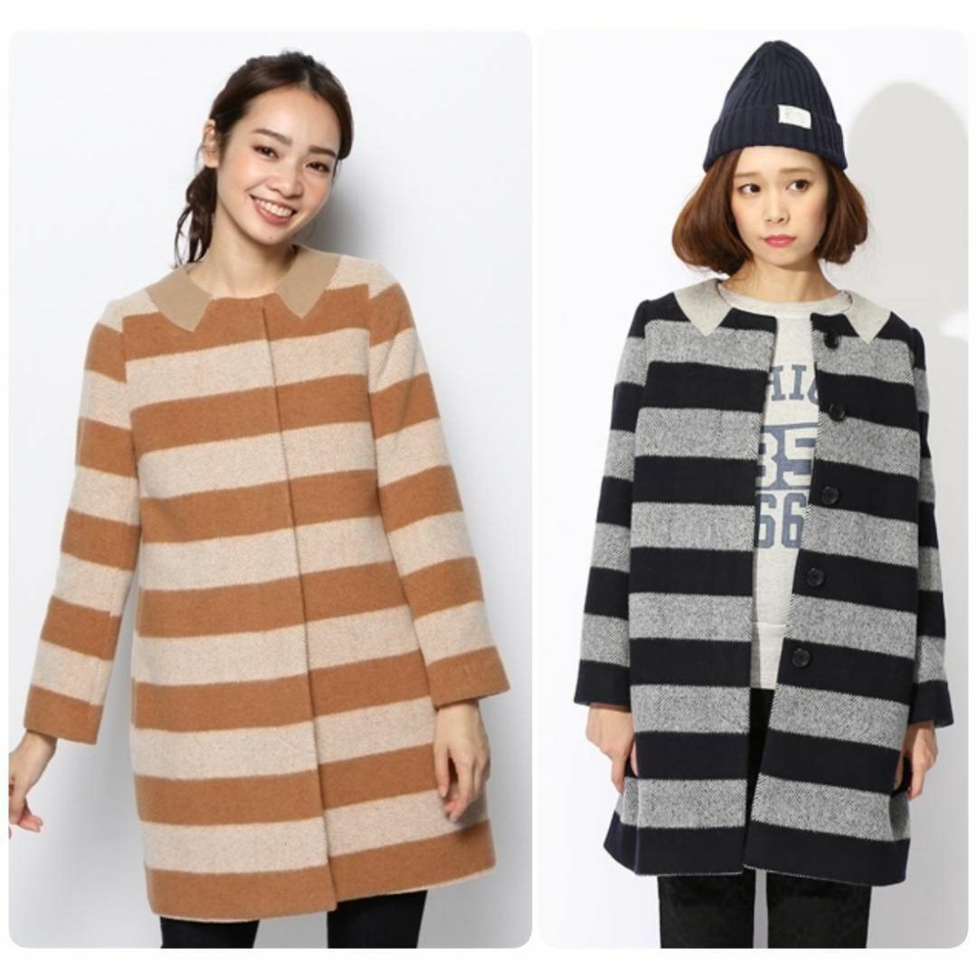 太いピッチのボーダーが目を惹くコート(*‘∀‘)